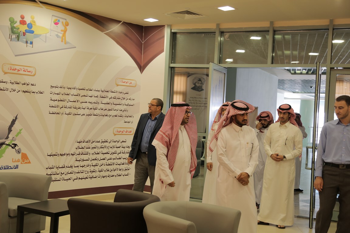 و استمع "الكبيري " لشرح مفصل من قبل وكيل كلية المجتمع للشؤون التعليمية والأكاديمية الدكتور لفاي عن ما تحتويه الوحدة، والأندية وتجهيزاتها، والأهداف والاستراتيجيات لها، والبرامج والأنشطة التي سوف يتم إقامتها بها.