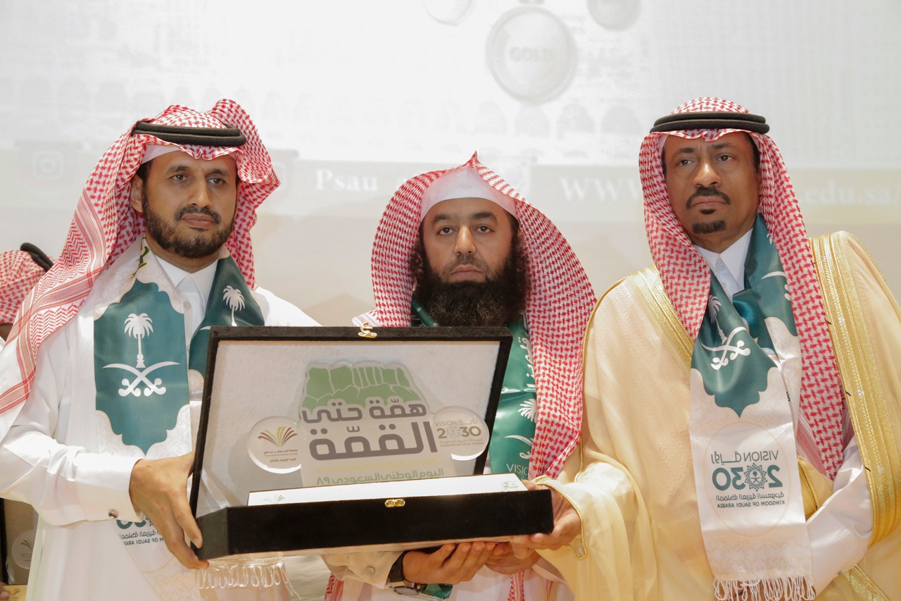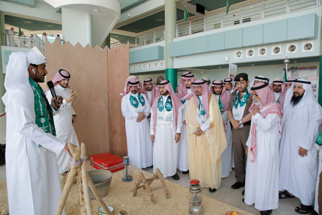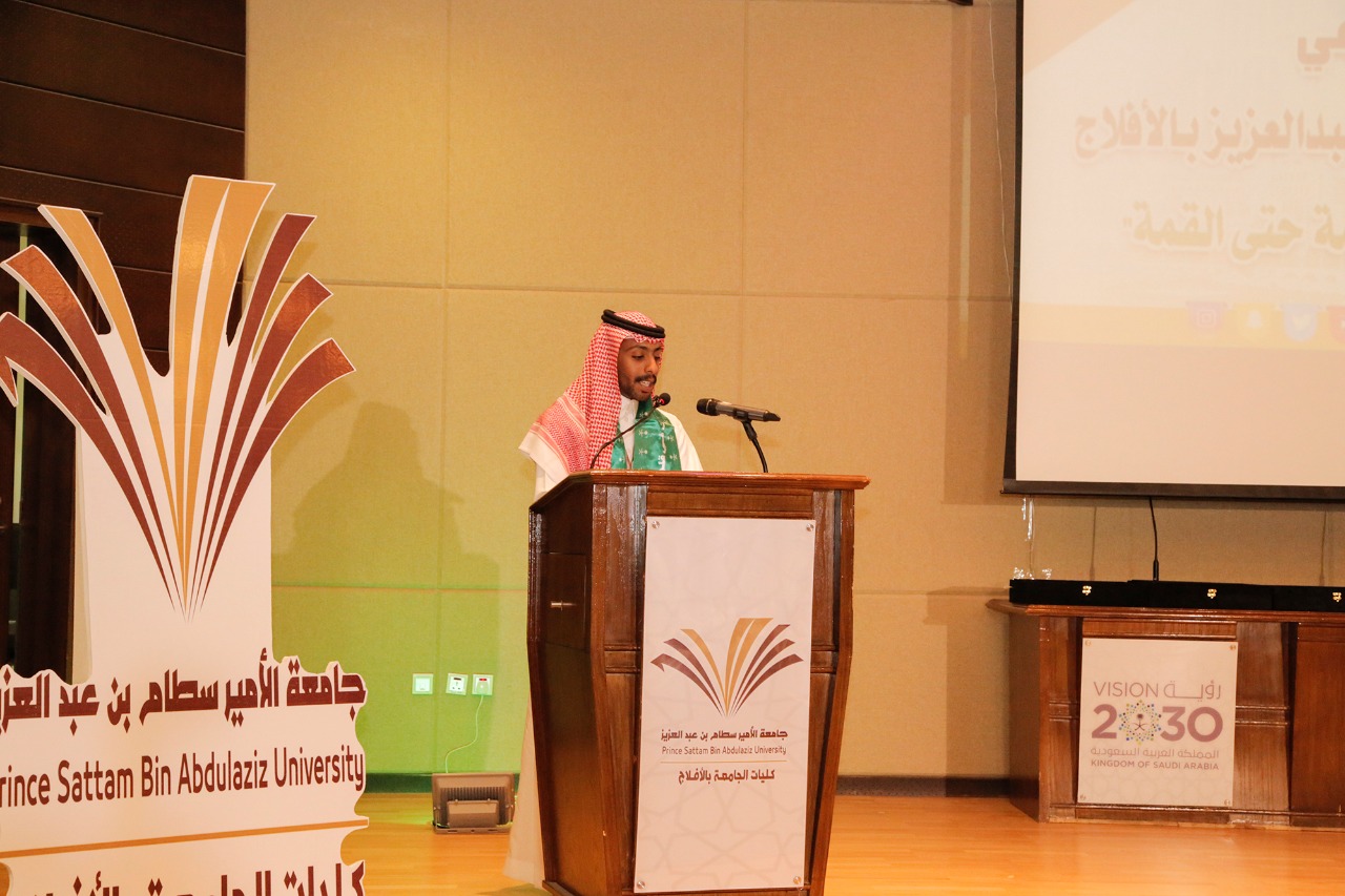 برعاية معالي مدير الجامعة الأستاذ الدكتور عبدالعزيز الحامد وبحضور سعادة محافظ الأفلاج تركي الهزاني أُقيمت اليوم الأثنين ، احتفالات كليات الأفلاج بمناسبة اليوم الوطني 89، و خلالها افتتح معرض  ضمت أركانه الماضي العريق للمملكة والمستقبل المشرق لها و شارك فيه العديد من الجهات الحكومية .وشهد الحفل  بحضور سعادة المشرف العام على كليات جامعة الأمير سطام بن عبد العزيز الدكتور مسفر بن محماس الكبيري وعدد من مدراء الإدارات الحكومية بالمحافظة وأعضاء هيئة التدريس والموظفين والطلاب بكليات الأفلاج افتتاح المعرض الذي احتوى على مشاركات عدد من الجهات الحكومية المدنية والعسكرية وضمت أركانه مشاركات تحاكي حياة الماضي والتطورات العصرية التي تشهدها المملكة.وشهدت الاحتفالية حفلا خطابيا تناولت فقراته عرضا مرئيا  تحدث عن بداية توحيد البلاد على يد المؤسس والاهتمام بالتعليم ونهج الملوك من بعده في إكمال ما بناه  الملك عبد العزيز رحمه الله، والنهضة التعليمة ، ورؤية الوطن 2030 واهتمامها بتطوير التعليم بالمملكة .من جهته قال المشرف على كليات الأفلاج الدكتور مسفر الكبيري خلال كلمته في الحفل:  اليوم نحتفل باليوم الوطني 89 ونحن ننعم ولله الحمد بالعز والطمأنينة والأمن والأمان والتقدم.وأضاف: يوم الوطن ليست كلمة وإنما هو استذكار للماضي واستشراف للحاضر الذي تقود فيه المملكة بوصلة العالم سياسياً واقتصادياً ولله الحمد، ثم تحدث عن التقدم الذي تحظى به المملكة في شتى المجالات ، كما عبر "الكبيري" خلال كلمته في الحفل عن مراحل تطور التعليم ووصول المملكة إلى مصاف الدول المتقدمة والتوسع في افتتاح الجامعات في العديد من مناطق المملكة والمراكز البحثية المتقدمة . كما تضمنت كلمة الكبيري رسالة للأجيال بقوله: الوطن يحتاج جميع أبنائه وهذا زمن استكمال البناء والتخصص الدقيق حتى نكون منافسين في كافة التطورات، داعياً بأن يكون الفرد عنصر بناء ومساهم في دفع عجلة التقدم، وله مبادرات إيجابية مجتمعية والتعامل الحسن وضرورة تغيير السلوك السلبي وزرع السلوك الإيجابي .واختتم كلمته مثمناً لزملائه في كليات الأفلاج جهودهم الكبيرة في الاستعداد والتنظيم وتنفيذ البرامج الوطنية احتفاءً بهذه المناسبة الغالية.وكانت كليات جامعة الأمير سطام بن عبدالعزيز بالأفلاج، قد أطلقت حزمة برامج وطنية بمنتزه ترفيه المملكة بالمحافظة استهدفت خلالها الأهالي صغارًا وكبارًا وعوائل.​