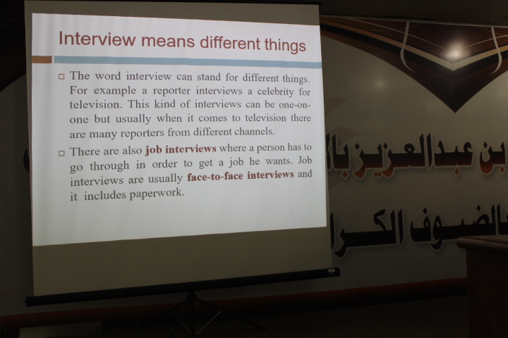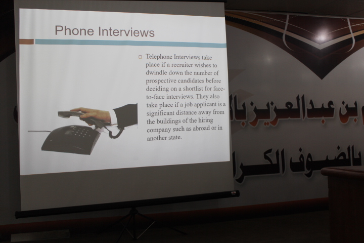 قامت وحدة الخريجات (التأهيل الوظيفي) بكليات الأفلاج (قسم الطالبات) يوم الأربعاء الموافق 1441/6/25هـ الساعة العاشرة صباحاً في المسرح بتنظيم دورة بعنوان (اجتياز المقابلة الشخصية) قدمتها أ. هبه محمد عبدالله، تهدف الدورة إلى التعريف بأهمية المقابلة الشخصية، وبيان كيفية نجاح الطالبة في اجتياز المقابلة الشخصية، وأبرز الأسئلة الشائعة في المقابلات الشخصية، كما تطرقت إلى أنواع المقابلات، وذكرت أهم النصائح التي يجب اتباعها والعمل بها عند إجراء المقابلة الشخصية، واختتمت الدورة بالإجابة عن استفسارات الطالبات.