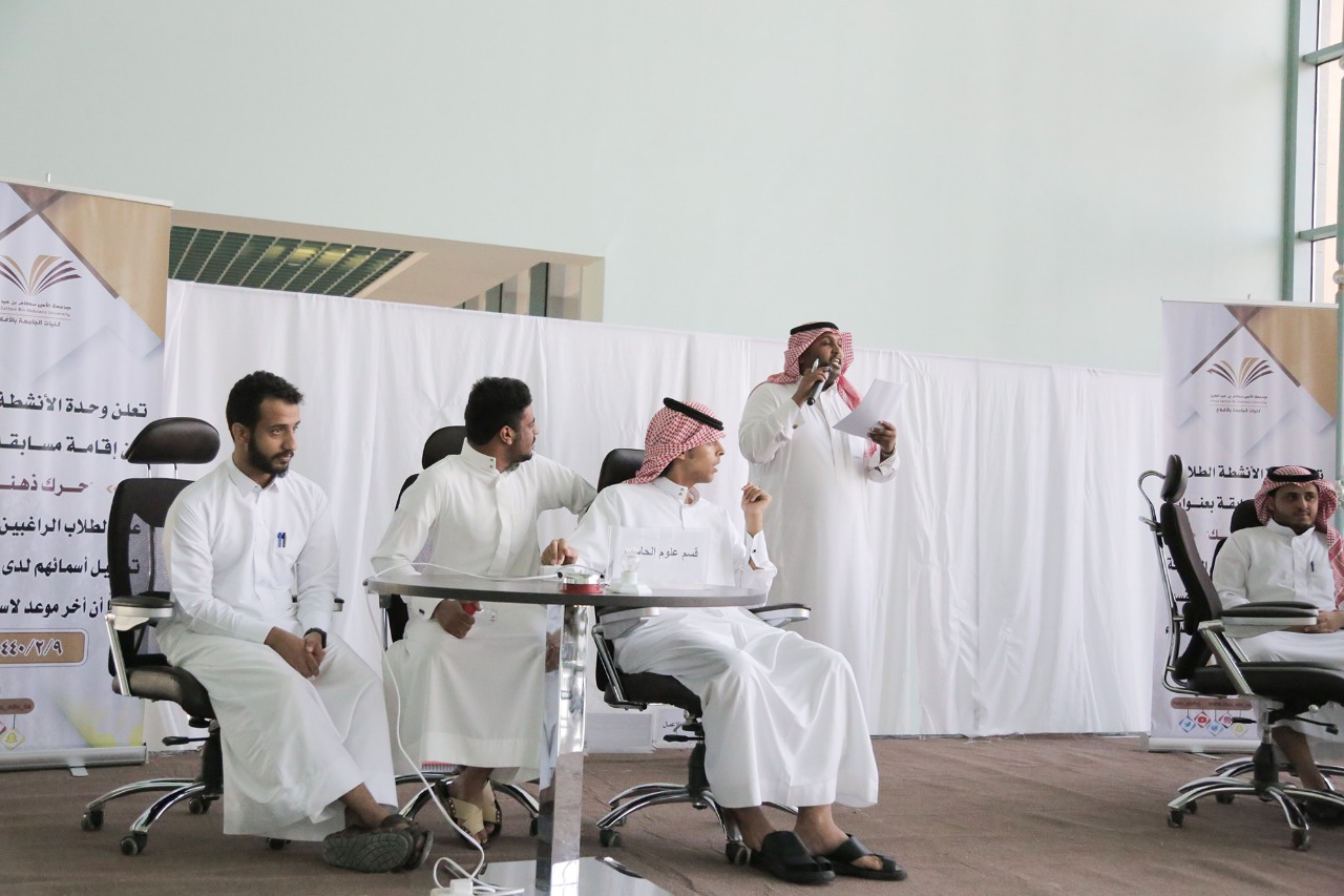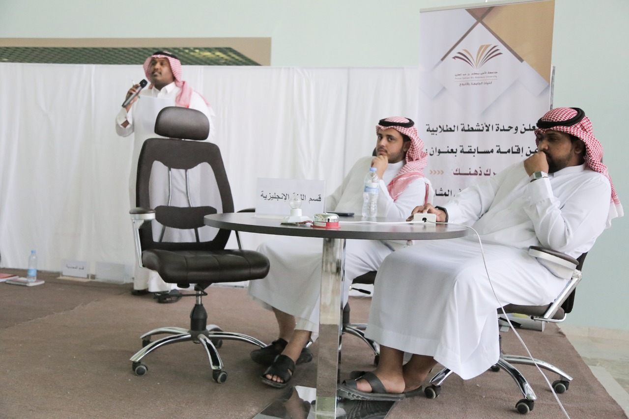 وكانت وحدة الأنشطة الطلابية ممثلاً بالقسم الثقافي بكليات الأفلاج قد انطلقت اليوم الثلاثاء مسابقة "حرك ذهنك" الثقافية بين الأقسام تأهل خلال المسابقة في التصفيات النصف النهائي قسم " الرياضيات" وقسم " اللغة الإنجليزية" تأهل بعدها قسم الرياضيات إلى النهائي وفي المقابل التقى قسم " الدراسات الإسلامية" مع قسم " القانون" تأهل فيها قسم " الدراسات الإسلامية"، وفي المباراة النهائية التقى قسم " الدراسات الإسلامية" مع قسم "الرياضيات" حصل فيها قسم " الدراسات الإسلامية" على المركز الأول بعد فوزه على قسم الرياضيات وتوج بجائزة المسابقة ، فيما حصل قسم الرياضيات على المركز الثاني في المسابقة .