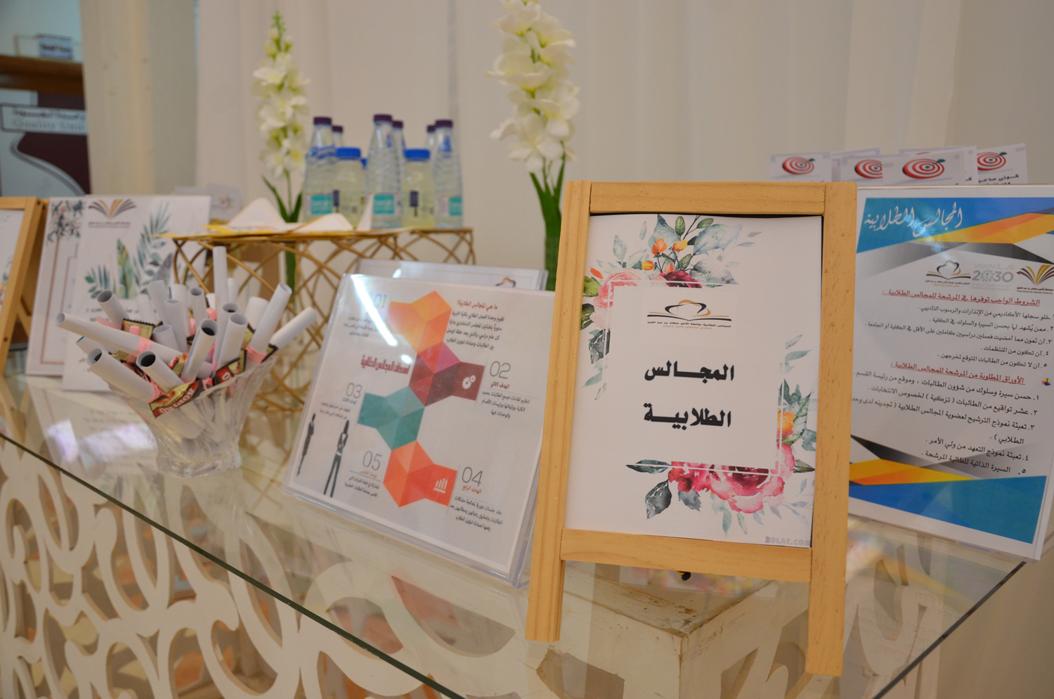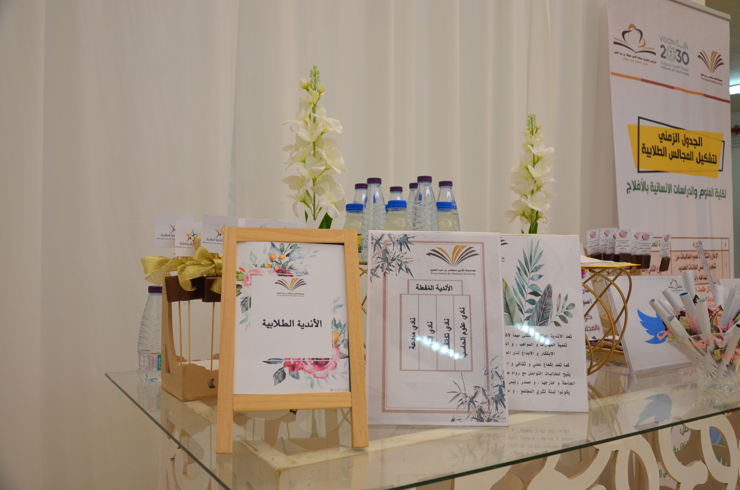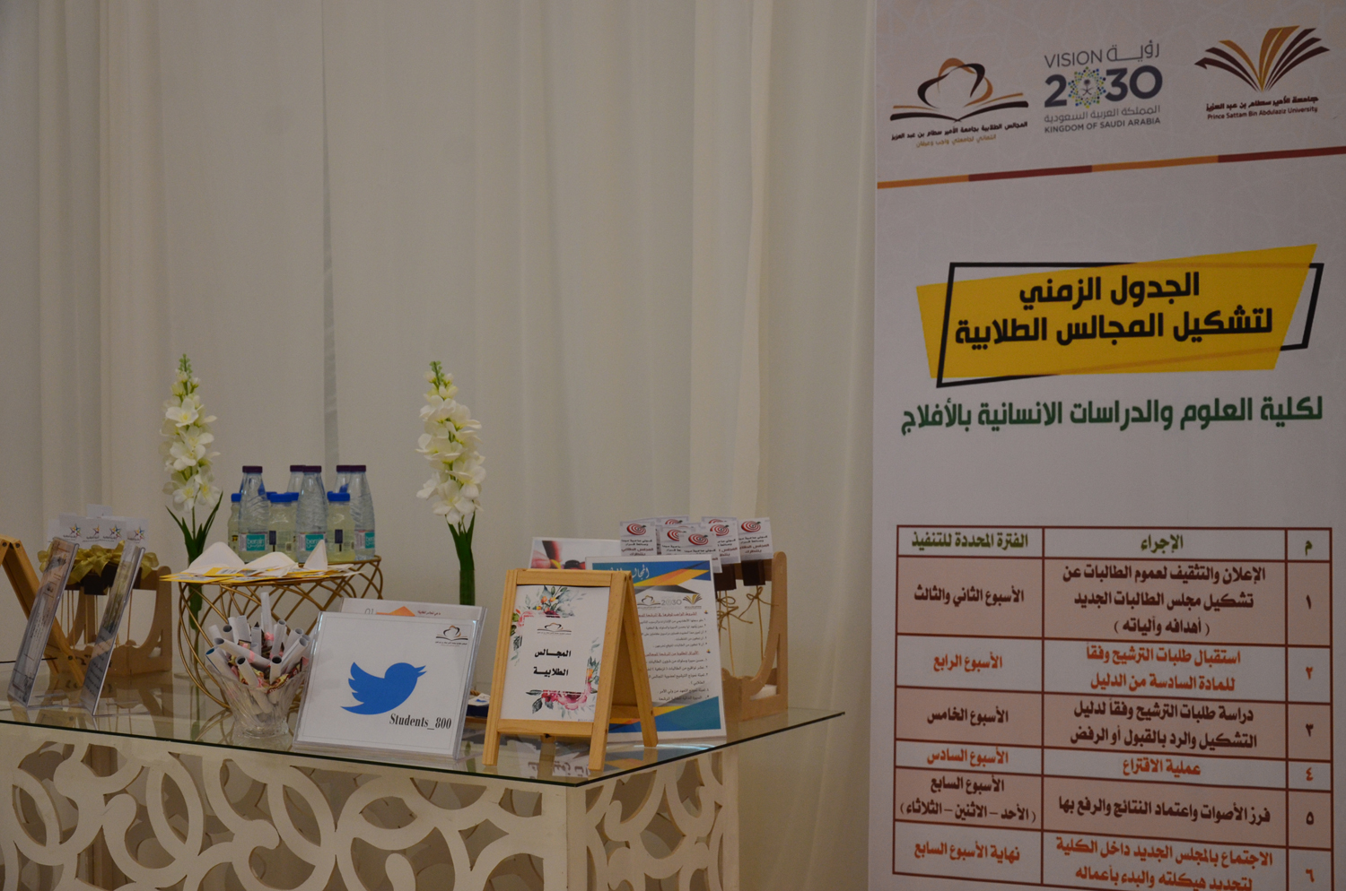 أقامت وحدة العمل الطلابي بكليات الأفلاج (شطر الطالبات) لقاءاً تعريفياً بالأندية والمجالس الطلابية والأنشطة الرياضية لمدة أربعة أيام من الأثنين إلى الخميس الموافق ١٧-٢٠ / ١ / ١٤٤١هـ، في بهو الكليات للأقسام الأدبية والعلمية.          حيث يهدف اللقاء إلى تعريف الطالبات بأهمية الأندية والمجالس الطلابية والأنشطة الرياضية وأهداف كلٍ منها، و نشر ثقافة ممارسة الرياضة بين الطالبات وبيان أثرها عليهم، شمل اللقاء شرحاً مفصلاً لخطوات التسجيل لعضوية المجالس وكيفية الإلتحاق بأي نادي من النوادي المُفعلة، واختتم اللقاء بأخذ اقتراحات الطالبات والاستماع لآرائهن.