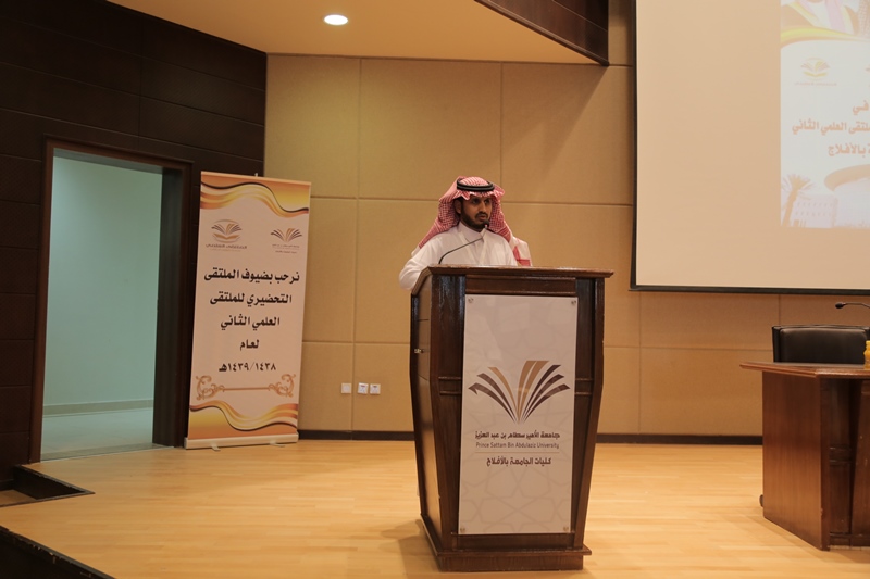 وتناولت فقرات فعاليات الملتقى التحضيري للملتقى العلمي الثاني بكليات جامعة الأمير سطام في الأفلاج حفل خطابي رحب خلالها المشرف على كليات الجامعة بالمحافظة الدكتور مسفر الكبيري بالحضور وشكر معالي مدير الجامعة على ما يقدمه لكليات الجامعة بالمحافظة من دعم واهتمام، كما ثمّن الكبيري خلال كلمته عمل القائمين على تنفيذ فعاليات الملتقى بالجامعة من جهود كبيرة حتى طلعت في أفضل صورة جُسّد خلالها تنافس وتفاعل الطلاب في العديد من الأعمال وأخرجت أفكار إبداعية وقدرات كبيرة لدى الطلاب.