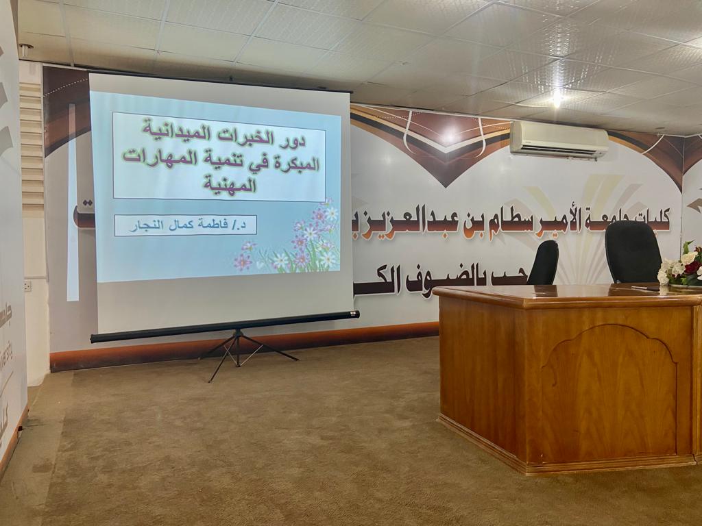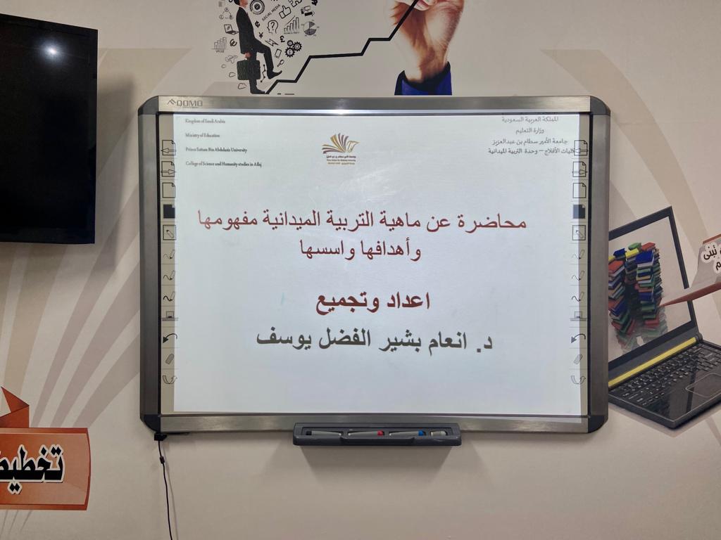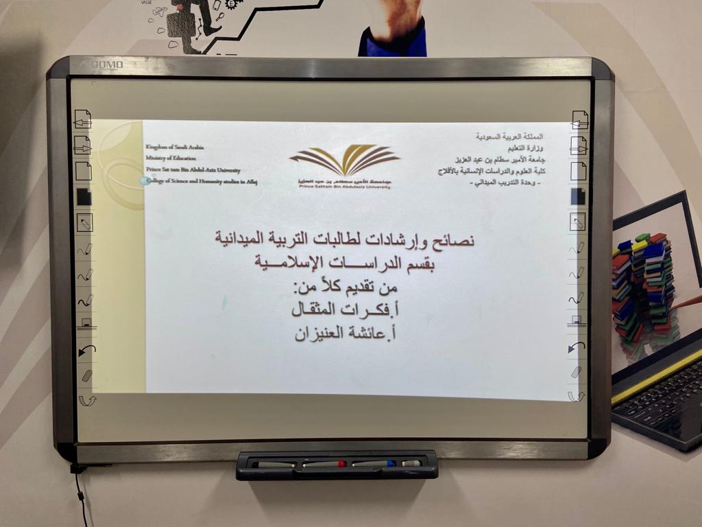 أقامت وحدة التدريب الميداني بكلية العلوم والدراسات الإنسانية بالأفلاج ( أقسام الطالبات ) تحت رعاية سعادة وكيلة الكلية د. مزون القحطاني أسبوع تهيئة للتربية الميدانية لقسمي رياض الأطفال والدراسات الإسلامية قدمه عدد من أعضاء هيئة التدريس تطرقوا فيه إلى التعريف بطالبات التربية الميدانية وماهية التربية مفهومها وأهدافها وأسسها ، ودور الخبرات الميدانية المبكرة في تنمية المهارات المهنية ، وأيضا ممارسات معلمات رياض الأطفال خلال فترة البرنامج ، وكيفية إدارة الروضة إلكترونياً – في ظل هذه الجائحة – حفظنا الله وإياكم منها ، وكذلك نصائح وإرشادات لطالبة التربية الميدانية ، ومهارات النجاح في التدريس ، واستخدام التقنية في التدريس ، وكيفية تقييم طالبة التربية الميدانية ، وأخلاقيات مهنة التدريس .