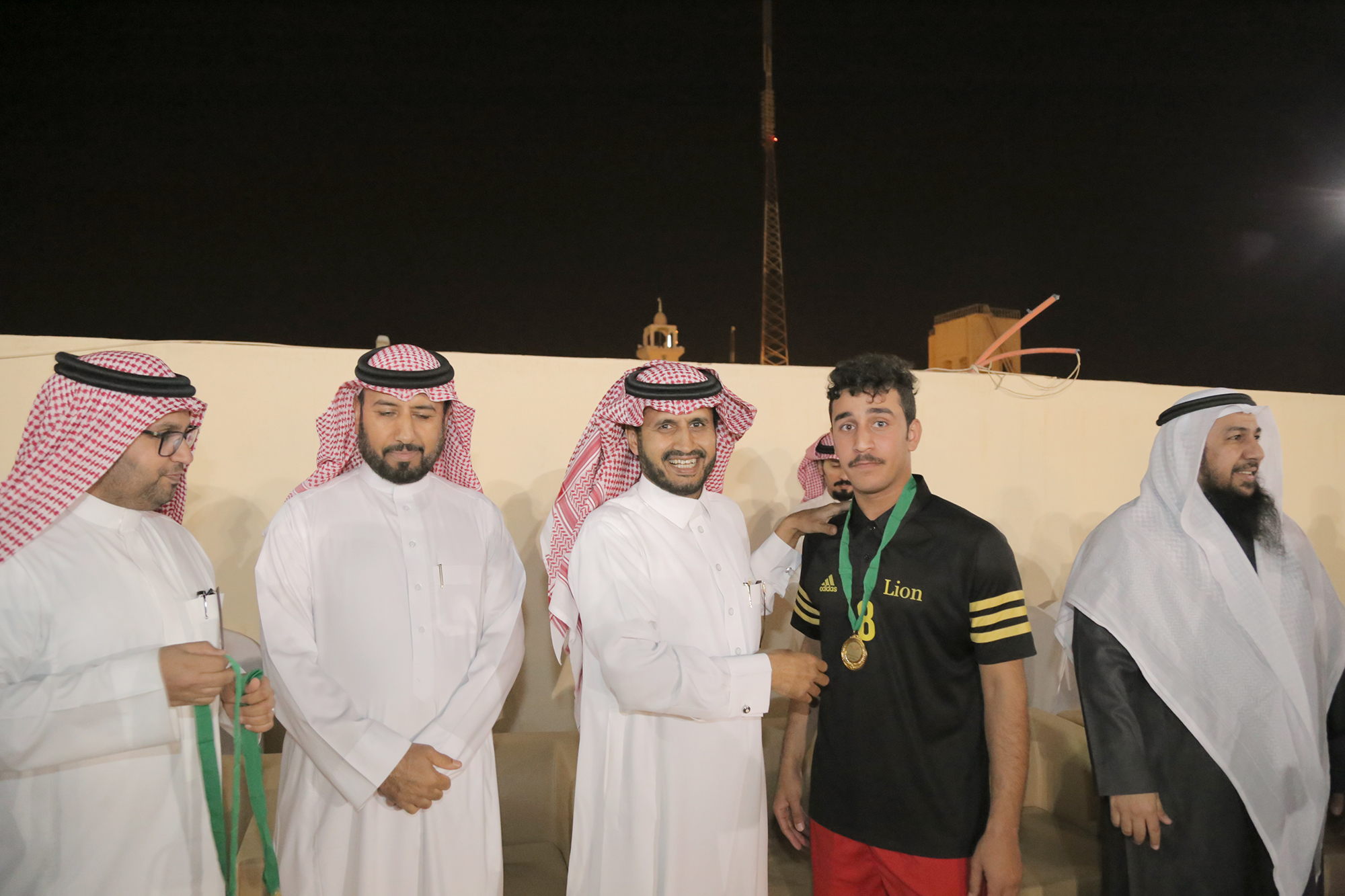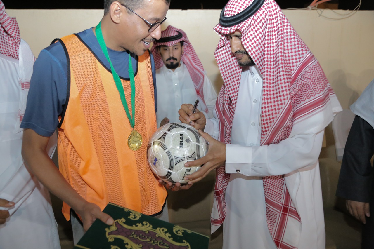 توجت إدارة الأعمال بكأس بطولة مشرف كليات الأفلاج بعد تغلبها على قسم الرياضيات بنتيجة 8/6 في المباراة التي جمعت الفريقين مساء يوم الأربعاء على ملعب لجنة التنمية الاجتماعية الأهلية بالأفلاج. وكان المشرف على كليات الجامعة بالأفلاج الدكتور مسفر بن محماس الكبيري قد رعي المباراة النهائية لبطولة مشرف كليات الأفلاج لكرة القدم المقامة مساء يوم أمس الأربعاء 28/3/1440 هـ على ملعب لجنة التنمية الاجتماعية الأهلية بالأفلاج، وبحضور وكلاء الكليات ورئيس قسم التنمية الاجتماعية معجب الكبيري التنمية ورئيس لجنة التنمية بالأفلاج مرضي الحبشان وعدد من أعضاء هيئة التدريس والموظفين.وشهد نهائي البطولة تنافسا بين فريق قسم الرياضيات و فريق قسم إدارة الأعمال، حيث بدء الشوط الأول بندية بين الفريقين وأنتهى الشوط الأول من المباراة بتقدم فريق إدارة الأعمال بنتيجة خمسة أهداف مقابل هدفين.وكرم مشرف كليات الأفلاج -بين شوطي المباراة- أبناء برنامج عناية التابع للجنة التنمية الاجتماعية بالأفلاج لمشاركتهم في فعاليات البطولة.فيما أنطلق الشوط الثاني من المباراة بإصرار من كلا الفريقين بتحقيق لقب البطولة إلى أن انتهت المباراة بفوز كلية إدارة الأعمال بنتيجة ثمانية أهداف مقابل ستة أهداف.وفي نهاية المباراة كرم المشرف على كليات الجامعة بالأفلاج الطاقم التحكيمي للبطولة، واللاعبين المميزين في البطولة، فيما حقق لقب أفضل لاعب في البطولة اللاعب محمد بن عبدالله آل دعران من قسم إدارة الأعمال، وحصل أفضل حارس اللاعب محمد بن عبدالله القليب من قسم إدارة الأعمال، كما حصل اللاعب عبدالمجيد بن فهد القحطاني من قسم الرياضيات على جائزة هداف البطولة، وحصل الدكتور خالد العلوش من قسم الرياضيات على جائزة أفضل منسق رياضي.بعدها سلم مشرف كليات الأفلاج الميداليات الفضية لصاحب المركز الثاني، وسلم الميداليات الذهبية وكأس البطولة لصاحب المركز الأول.