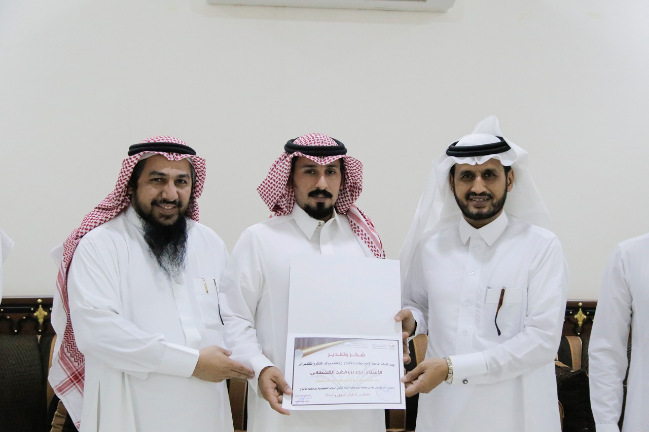 استقبل المشرف على كليات الجامعة بالأفلاج الدكتور مسفر بن محماس الكبيري فريق كليات الجامعة لكرة القدم بعد تحقيقه كأس بطولة موظفي الدوائر الحكومية على مستوى محافظة الأفلاج الذي شارك فيه عدد من الجهات الحكومية. وأشاد الكبيري خلال لقائه في مكتبة أعضاء الفريق المشارك في البطولة بأداء الفريق الذي توّج بعد وصوله لنهائي البطولة ورفع كأس البطولة مقدماً لهم التهنئة، ومشيراً إلى أن الفوز بالبطولة على مستوى المحافظة أتى بالتنظيم والتعاون وروح الفريق الواحد والانتماء الذي ساعد على تحقيق الإنجاز ، مهيباً بمزيد من الإنجازات وتشريف الجامعة في المسابقات التي يخوض الفريق غمارها، ومؤكداً في الوقت نفسة على ضرورة الاستعداد الجيد للفريق المشارك في بطولة معالي مدير الجامعة لكرة القدم التي تنظمها عمادة شؤون الطلاب بعد تأهل فريق كليات الافلاج إلى نصف النهائي لملاقاة فريق كلية العلوم الطبيه التطبيقية بالخرج يوم غدٍ الثلاثاء. وفي ختام اللقاء تم تكريم الفريق في مركز الأنشطة في احتفال بهذه المناسبة حضرها وكلاء الكليات، وفي المقابل فقد ثمن أعضاء الفريق هذا التكريم وقدموا كأس البطولة إهداء للدكتور "الكبيري".
