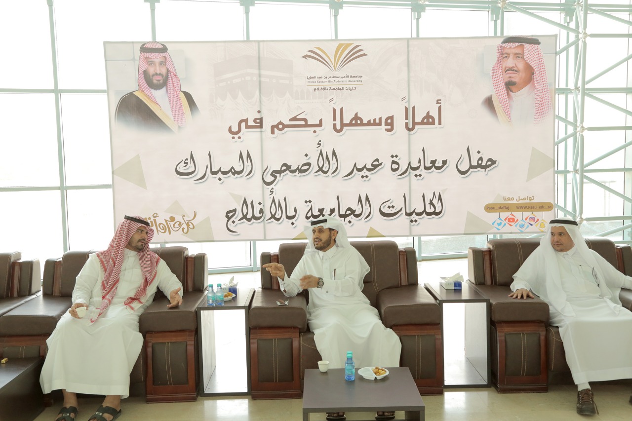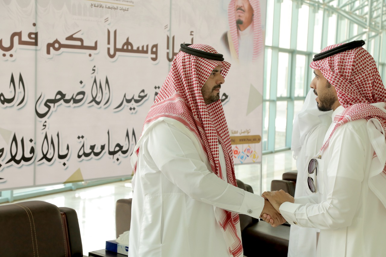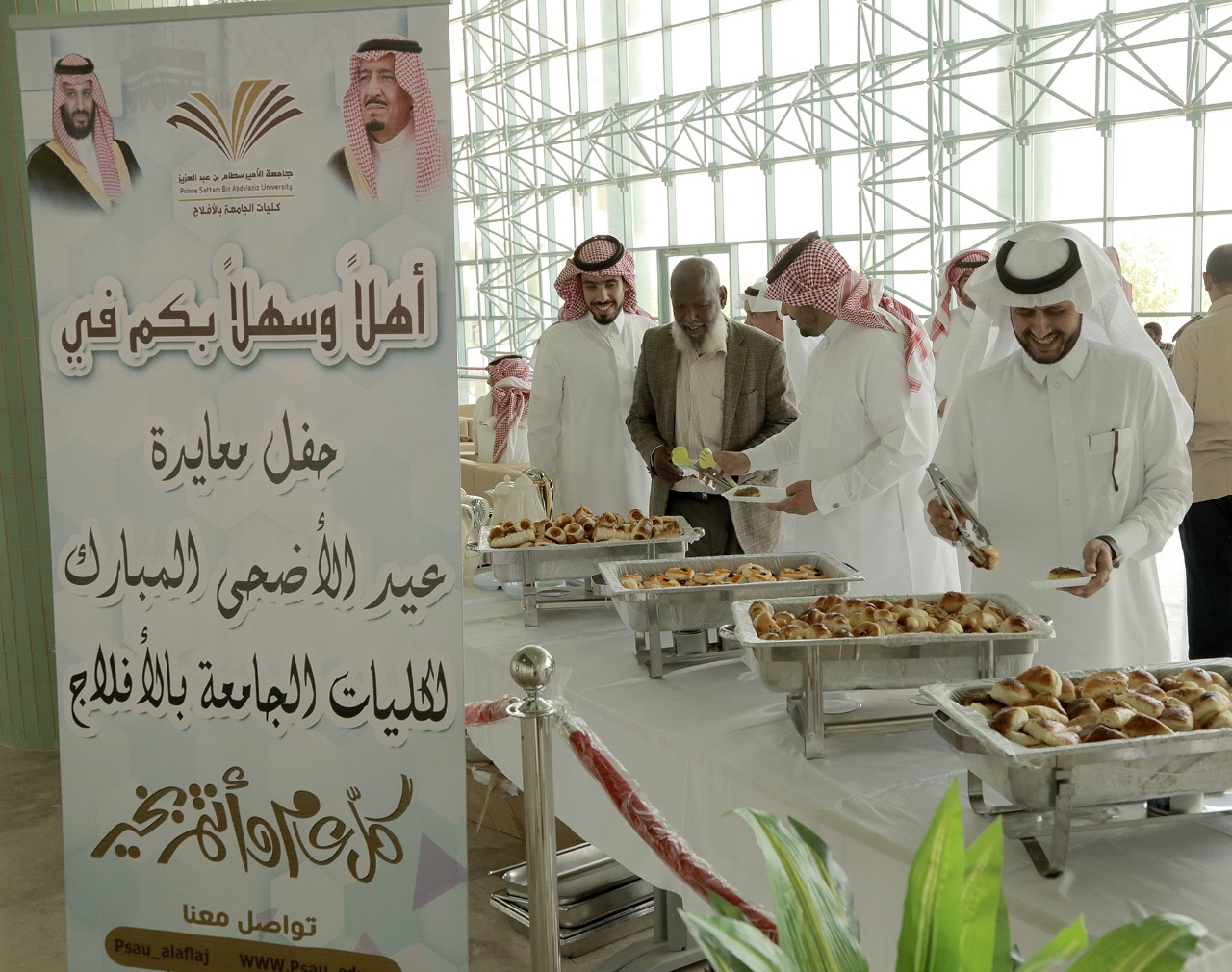 نظمت كليات جامعة الأمير سطام بن عبدالعزيز في الأفلاج هذا اليوم يوم الأثنين الموافق 1440/12/18​هـ حفل معايدة لمنسوبيها وذلك بحضور المشرف على كليات الجامعة بالأفلاج الدكتور مسفر بن محماس الكبيري وأعضاء هيئة التدريس والموظفين، كما تبادل خلاله الجميع التهاني والتبريكات بمناسبة عيد الأضحى المبارك. وقدم المشرف على كليات الأفلاج الدكتور مسفر الكبيري التهنئة لخادم الحرمين الشريفين الملك سلمان بن عبدالعزيز، وإلى سمو ولي العهد الأمير محمد بن سلمان حفظهما الله، ولجميع منسوبي الكليات بهذه المناسبة، كما هنأ "الكبيري" القيادة الرشيدة بنجاح موسم حج هذا العام، وما حققته المملكة من نجاحات كبيرة في خدمة ضيوف الرحمن وتأدية الحجاج مناسكهم في راحة وطمأنينة.
