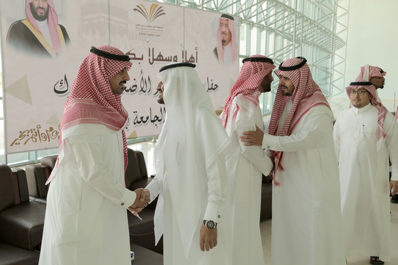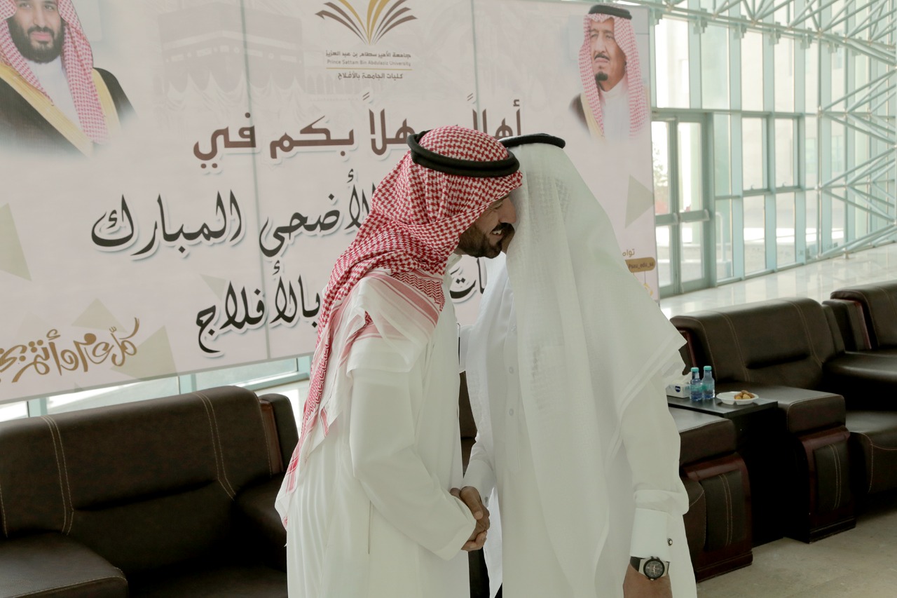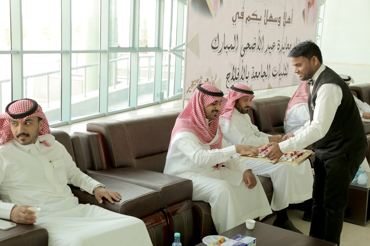 نظمت كليات جامعة الأمير سطام بن عبدالعزيز في الأفلاج هذا اليوم يوم الأثنين الموافق 1440/12/18​هـ حفل معايدة لمنسوبيها وذلك بحضور المشرف على كليات الجامعة بالأفلاج الدكتور مسفر بن محماس الكبيري وأعضاء هيئة التدريس والموظفين، كما تبادل خلاله الجميع التهاني والتبريكات بمناسبة عيد الأضحى المبارك. وقدم المشرف على كليات الأفلاج الدكتور مسفر الكبيري التهنئة لخادم الحرمين الشريفين الملك سلمان بن عبدالعزيز، وإلى سمو ولي العهد الأمير محمد بن سلمان حفظهما الله، ولجميع منسوبي الكليات بهذه المناسبة، كما هنأ "الكبيري" القيادة الرشيدة بنجاح موسم حج هذا العام، وما حققته المملكة من نجاحات كبيرة في خدمة ضيوف الرحمن وتأدية الحجاج مناسكهم في راحة وطمأنينة.