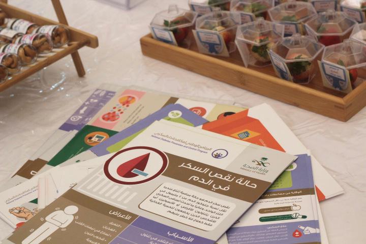 قامت وحدة العمل الطلابي ممثلة في البرامج الثقافية والاجتماعية بكليات الأفلاج (قسم الطالبات) يوم الأثنين 1441/3/21هـ الساعة التاسعة و النصف صباحاً في بهو مبنى (أ) للأقسام الأدبية بتنظيم برنامج بعنوان "اليوم العالمي للسكري" بالتعاون مع الدكتورة مناهل محمد صديق، ويهدف البرنامج إلى التوعية بمخاطر داء السكري، و أهمية التثقيف لعلاج مرض السكري والوقاية من مضاعفاته، و زيادة الوعي بالعلامات التحذيرية للإصابة بمرض السكري وتشجيع التشخيص المبكر، وكذلك تسليط الضوء على العادات الصحية التي يجب اتباعها يوميا للوقاية منه، والحد من عوامل الخطر لمرض السكري من النوع الثاني، وتم خلال البرنامج توزيع برشورات تعريفية وتثقيفية، وإرشادات غذائية لمرضى السكري.