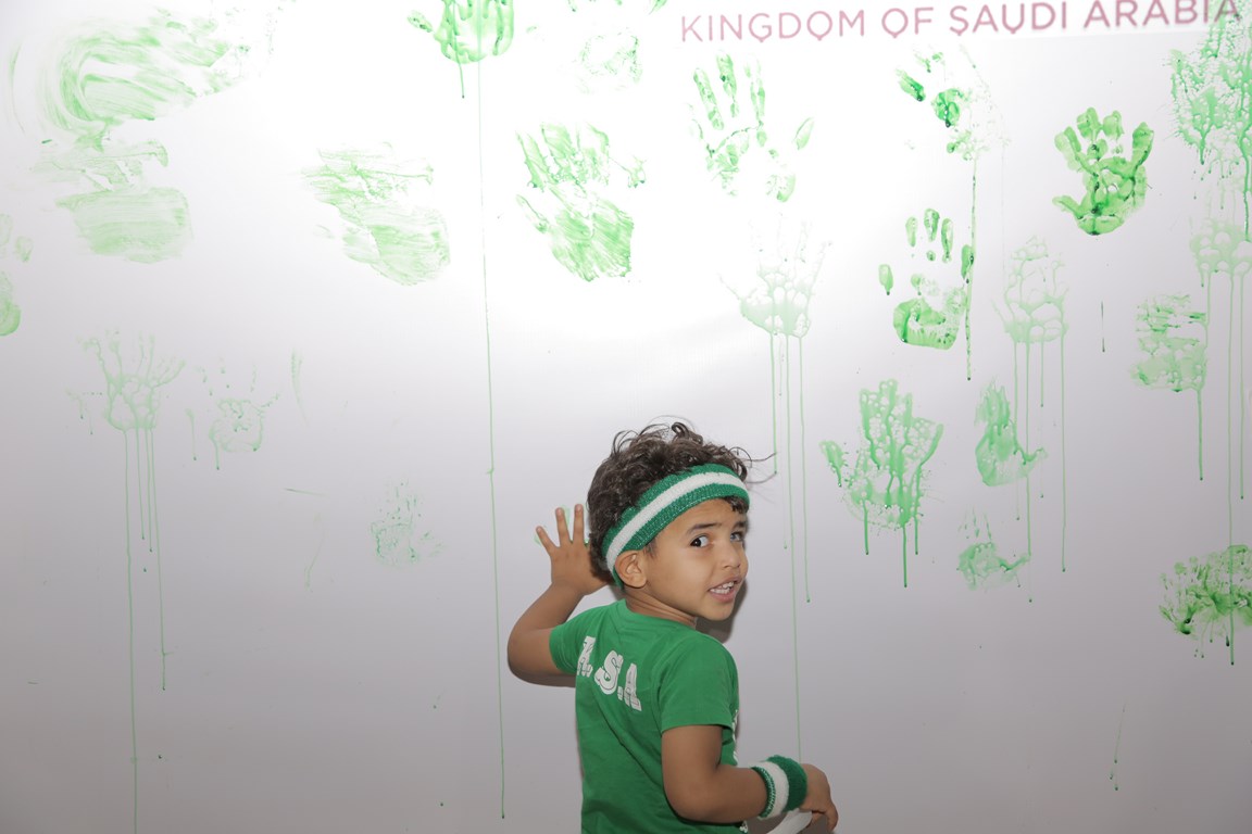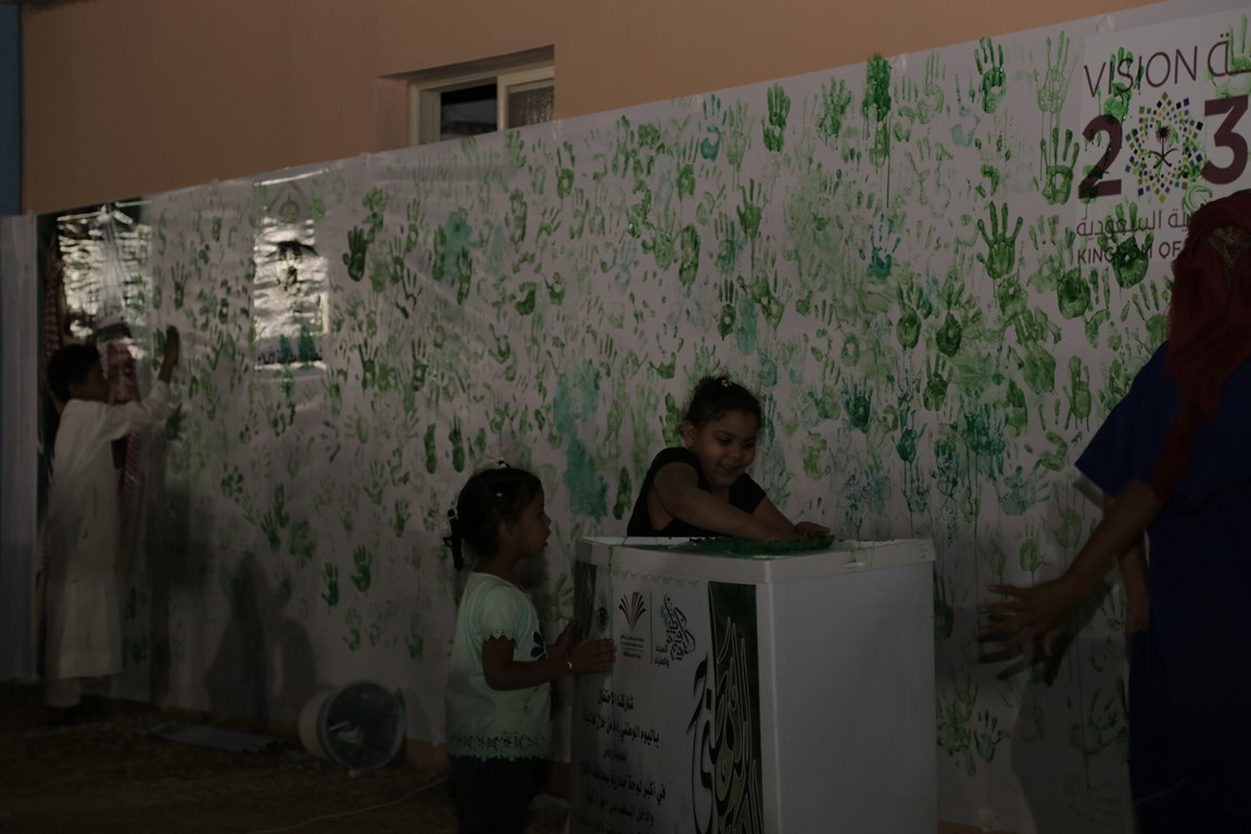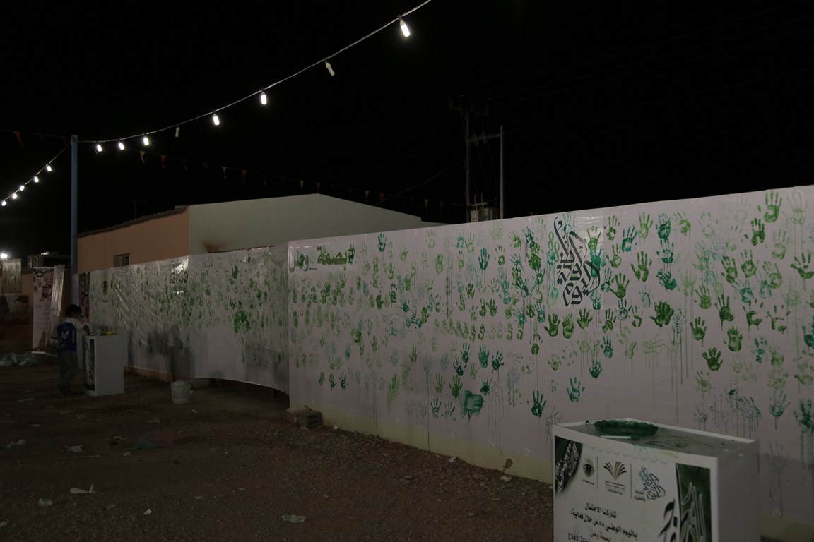 وعرضت كليات الأفلاج، لوحة جدارية على مساحة 25×3 لزوار المنتزة تحمل صورتي خادم خادم الحرمين الشرفين الملك سلمان وسمو ولي عهده الأمين الأمير محمد بن سلمان -حفظهما الله- وضع عليها نحو 4 آلاف زائر بصماتهم.