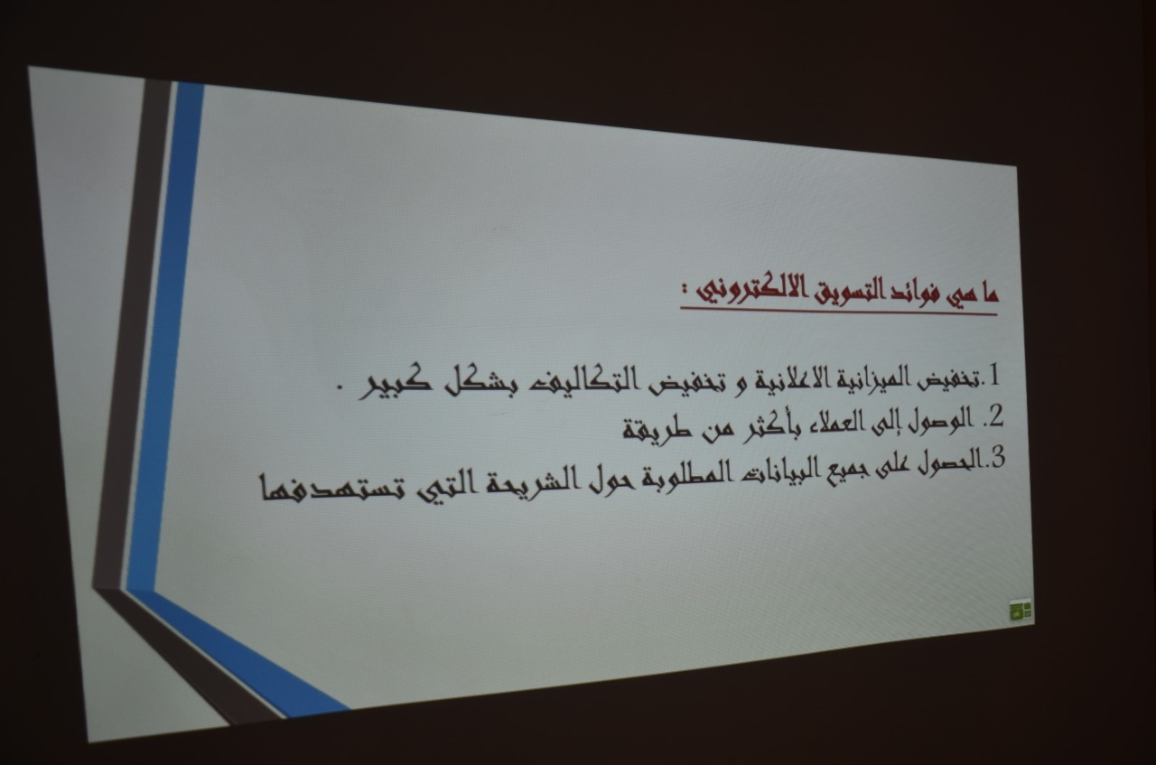 قامت وحدة الخريجات بكليات الأفلاج (قسم الطالبات) يوم الخميس 1441/2/25هـ الساعة الثامنة صباحاً في القاعة الرياضة للأقسام العلمية بتنظيم دورة بعنوان "الإبداع في التسويق الإلكتروني" قدمتها أ. نمشه ناصر آل سليمان، تحدثت فيها عن التسويق الإلكتروني من حيث تعريفة و فائدته و أقسامه، ثم ذكرت الاستراتيجيات الإبداعية في التسويق الإلكتروني، و مميزات وعيوب التسويق الإلكتروني، كما ذكرت عوامل هامة تؤثر في نجاح الحملة التسويقية، و طريقة تمييز الموقع الموثوق والغير موثوق، واختتمت الدورة بالإجابة عن استفسارات الطالبات.