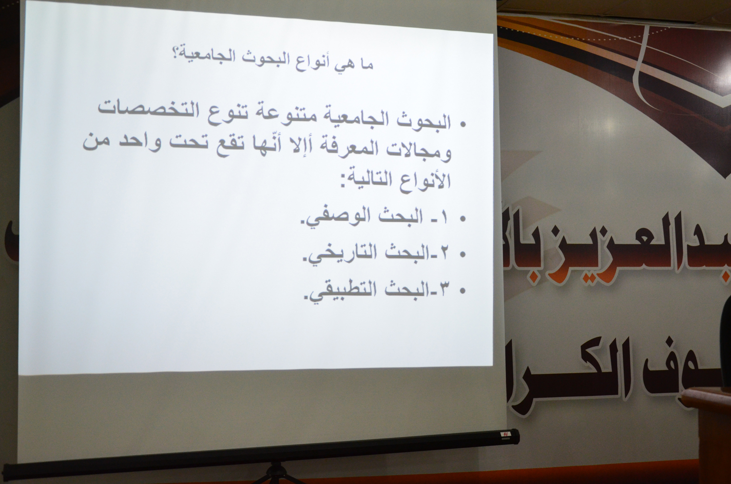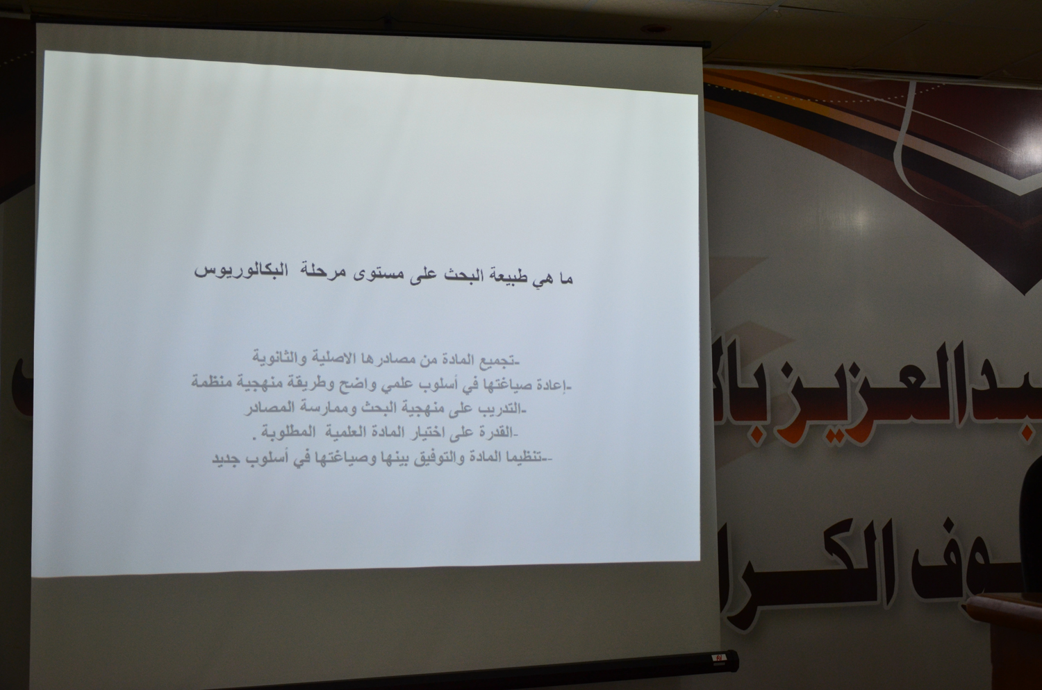 أقامت وحدة الخريجات بكليات الأفلاج (قسم الطالبات) يوم الأربعاء 1441/2/10هـ الساعة العاشرة صباحاً في المسرح دورة بعنوان " المنهجية في تخطيط البحوث العلمية" قدمتها د. ماجدة برعي، تحدثت فيها عن طبيعة البحث العلمي على مستوى مرحلة البكالوريوس وتطرقت لكيفية التدريب على منهجية البحث واستخدام المصادر و القدرة على اختيار المادة العلمية المطلوبة وأخذها من مصادرها الأصلية والثانوية، كما ذكرت أنواع البحوث الجامعية، وعناصر خطة البحث، ومحتويات البحث، واختتمت الدورة بالإجابة عن استفسارات الطالبات.