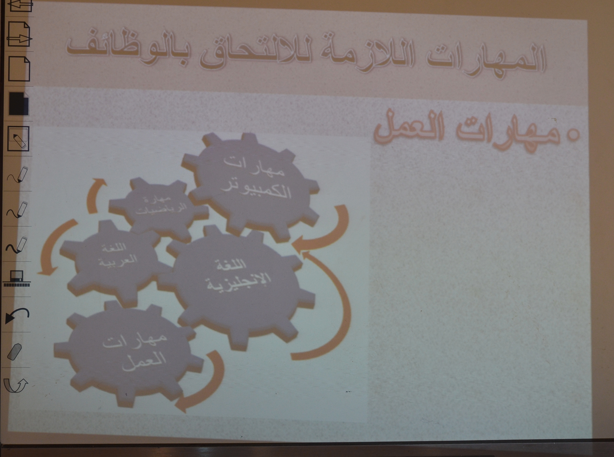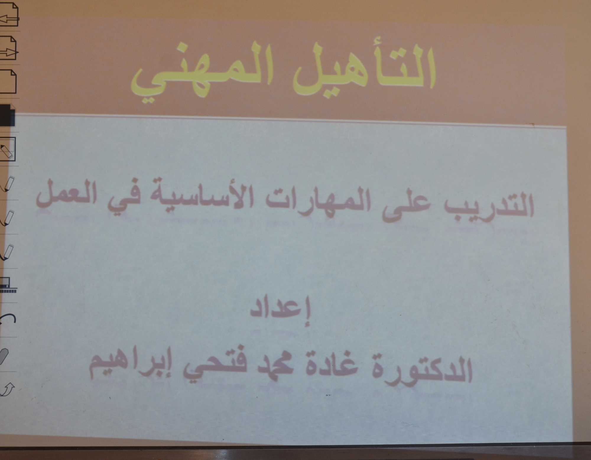 نظمت وحدة الخريجات بكلية العلوم والدراسات الإنسانية بالأفلاج (شطر الطالبات ) يوم الأثنين ١٤٤٠/٣/١١ هـ الساعة العشرة صباحاً دورة تدريبية عن التأهيل المهني قدمتها عضو هيئة التدريس الدكتورة غادة فتحي ، تناولت فيها طريقة الإستعداد لسوق العمل و تنمية المهارات الأساسية اللازمة للإلتحاق الوظيفي ، وكذلك ايضاً الضوابط الأساسية للمهنة و متطلبات سوق العمل ، كما ذكرت المهارات الأساسيية التي يجب إتقانها كاللغة من أجل تحقيق التواصل و القدرة على التعبير شفاهة و كتابة و إجادة لغة أجنبية ايضاً و المهارات الأساسية للحاسب الآلي ، انتقلت بعدها إلى ضوابط العمل التي تتمثل في الإلتزام بالمواعيد و التعاون و الإتقان و التميز وكذلك الإبداع . اختتمت الدورة بإخلاقيات المهنة تحت شعار الوظيفة قيمة وشرف .