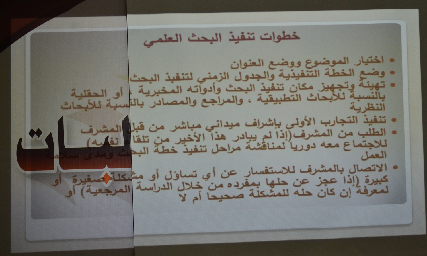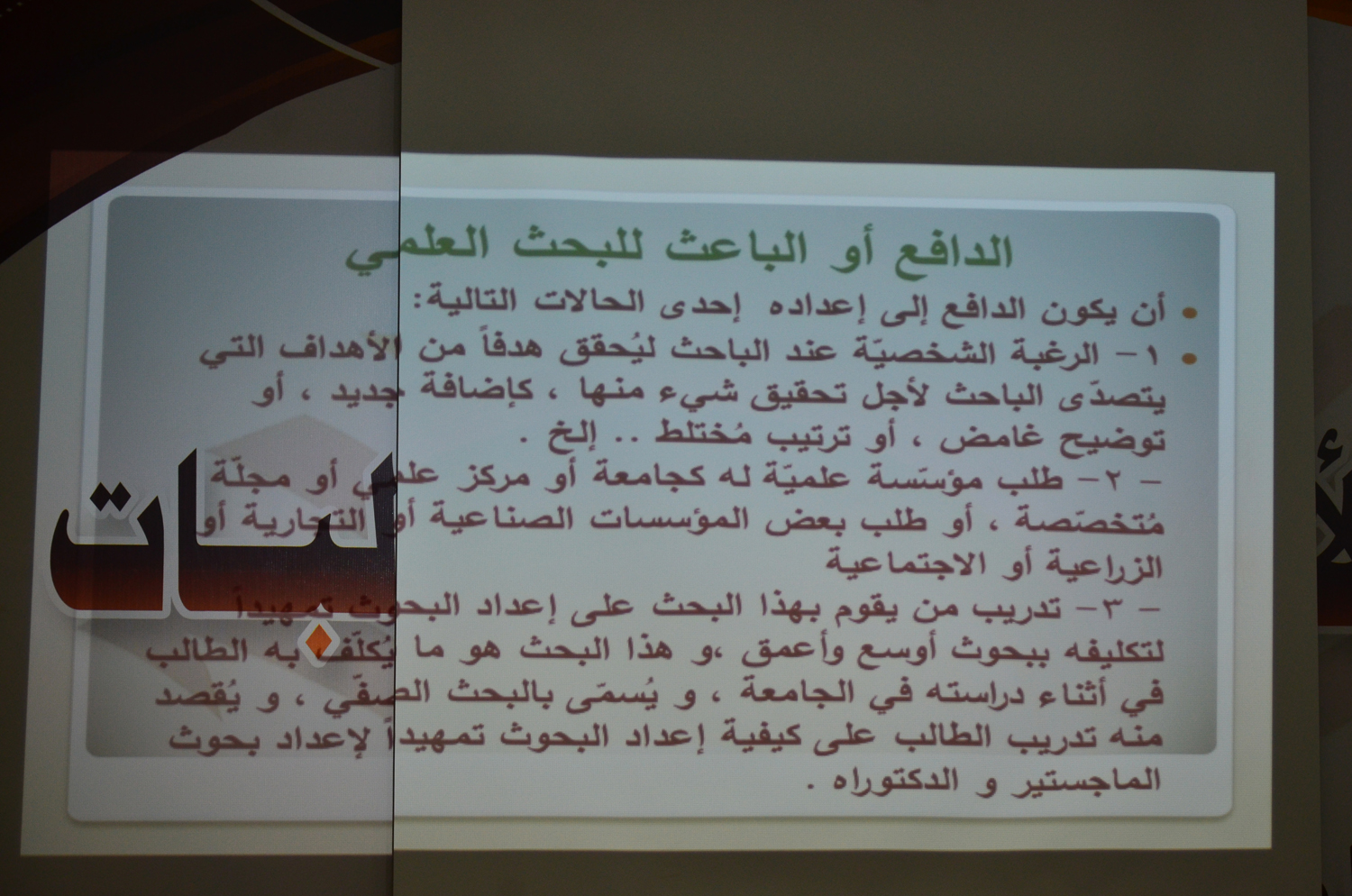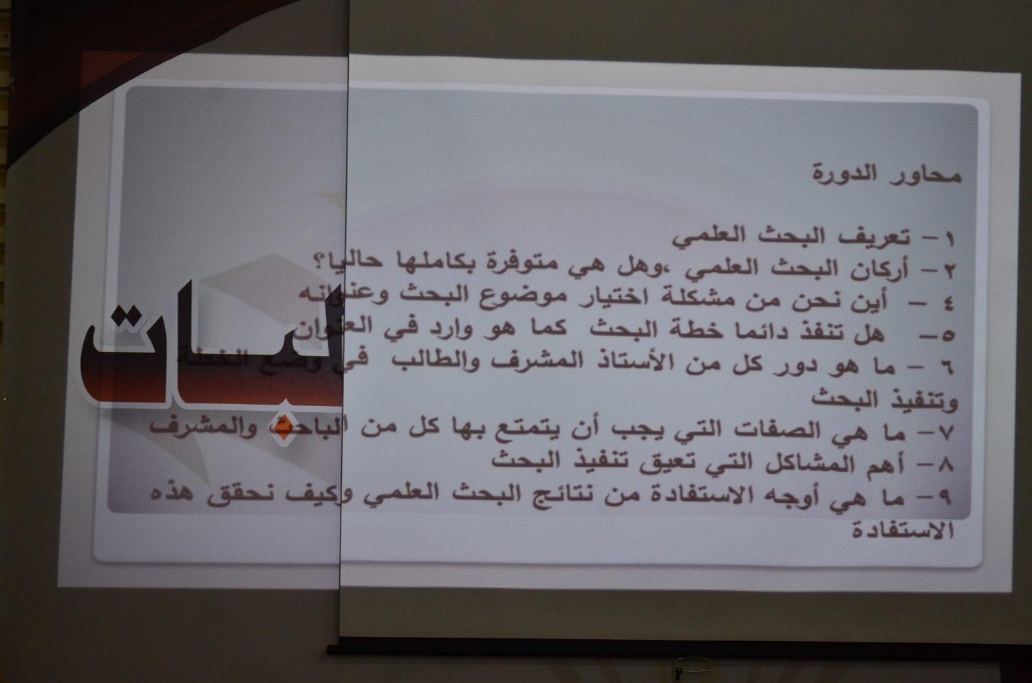 نظمت وحدة الخريجات بكلية العلوم والدراسات الإنسانية بالأفلاج ( شطر الطالبات ) اليوم الأثنين 1440/6/13 هـ الساعة التاسعة صباحاً في مسرح الكلية دورة تدريبية بعنوان ( كيف تُعد مقترحاً بحثياً ) قدمتها عضو هيئة التدريس د. نهاد عبدالمطلب , تناولت فيها تعريف البحث العلمي و أركانه وكيفية الحد من مشكلة اختيار عنوان البحث , و كذلك دور كل من الطالب و المشرف في تنفيذ البحث و أيضاً الصفات التي يجب أن يتمتع بها الباحث و المشرف , كما تطرقت الى أهم المشاكل التي تعيق تنفيذ البحث .في ختام الدورة تم عرض أوجه الاستفادة من نتائج البحث العلمي و كيف نحقق هذه الاستفادة .