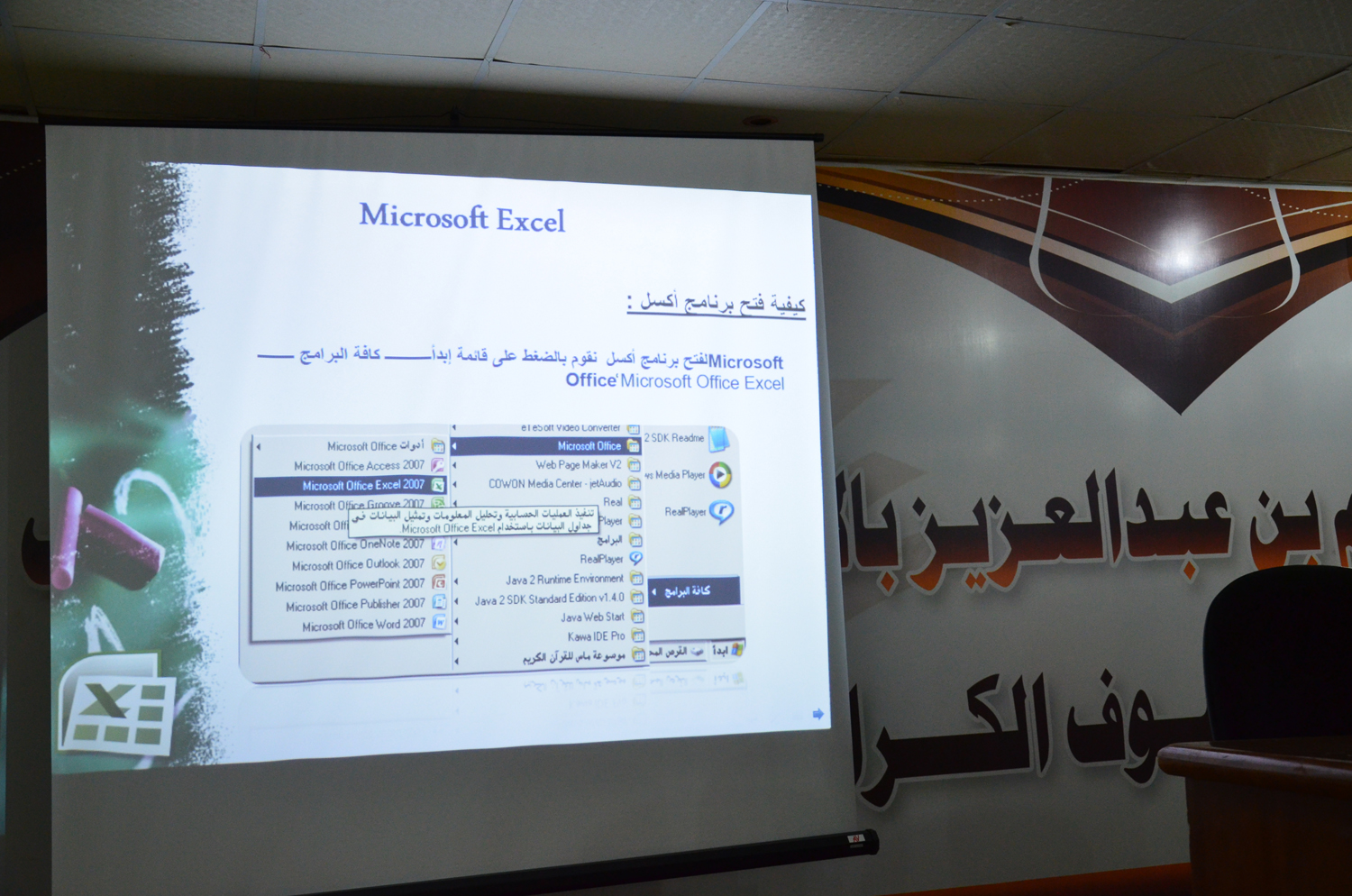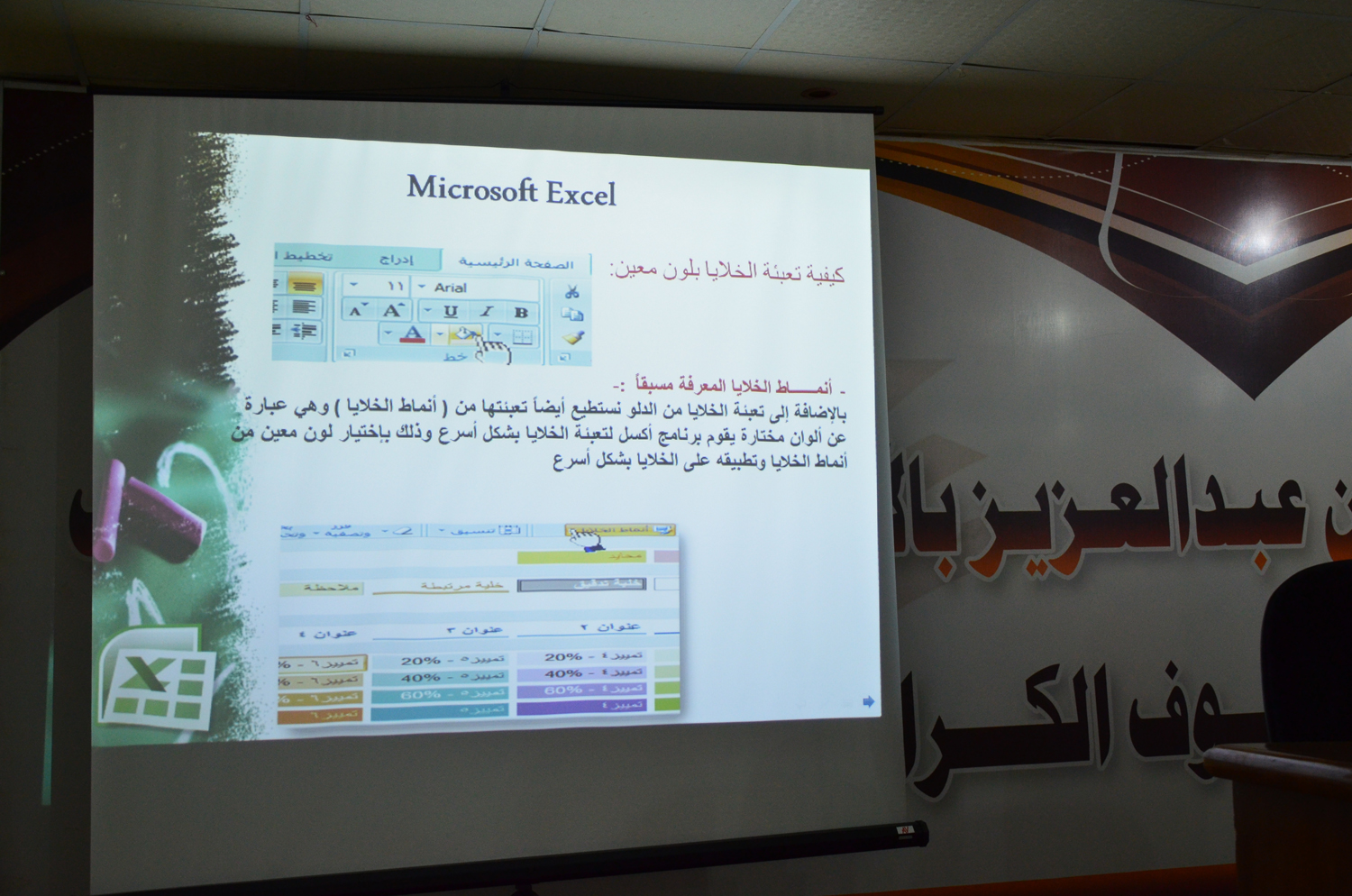 أقامت وحدة الخريجات بكليات الأفلاج ( قسم الطالبات ) يوم الأحد 1441/2/7هـ الساعة التاسعة صباحاً في المسرح دورة بعنوان "مقدمة في برنامج Microsoft Excel" قدمتها د.عايدة السلمان، تحدثت فيها عن برنامج مايكروسوفت اكسل من حيث تعريفة وكيفية تشغيل البرنامج والتعامل مع أوراق العمل وطرق عمل الجداول وأنماط الجداول والخلايا وكيفية استخدام الدوال الحسابية في البرنامج، كما وضحت طرق الطباعة و آلية حماية ورقة العمل. و اختتمت الدورة بالإجابة عن استفسارات الطالبات.