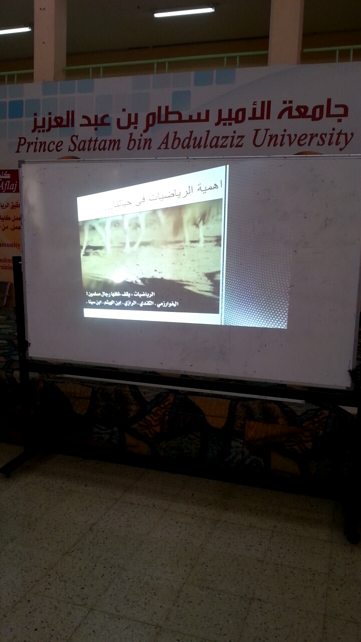 امجاد الدماعين: اقام المستوى الرابع من قسم الرياضيات  في الأسبوع الثاني لفعاليات نادي سيجما يوم الأحد الموافق : 1438/7/27هـ في مسرح المبنى العلمي برنامج : (الأرقام والأذكار ) تحت إشراف الأستاذة رفعة الوذيح والذي يهدف إلى تعريف الطالبات بفضل الذكر وفوائدة ، وكيفية الدعاء بحسن الظن والتضرع . في يوم الثلاثاء الموافق : 1438/7/29هـ أقام المستوى السابع بمصلى المبنى العلمي برنامج (ويبقى الأمل ) تحت إشراف الأستاذة شاديه، ويهدف البرنامج إلى إحياء الأمل وغرس الثقة في نفوس الطالبات للوصول إلى التفوق. أما في يوم الأبعاء الموافق : 1438/7/30 هـ أقام المستوى الثاني بمسرح المبنى العلمي برنامج (الرياضيات في حياتنا) تحت إشراف الأستاذة رفعه الوذيح، ويهدف إلى تعريف الحاضرات بأهمية الرياضيات في البناء والمواصلات وتنظيم سائر الأمور الحياتية . وأخيرًا أقام المستوى الثاني من قسم الحاسب الآلي يوم الخميس الموافق 1438/8/1هـ بمسرح المبنى العلمي برنامج (الفيزياء في الحياة العملية) تحت إشراف الأستاذة منى البهي، والذي يهدف إلى تعريف الطالبات بعلاقة الفيزياء بالطبيعة، وتعريف الطالبات ببعض علماء الفيزياء وإسهاماتهم في تطور هذا العلم . واختتمت البرامج بتقديم المسابقات التفاعلية والجوائز التحفيزية وفي الختام قدمت وكيلة مشرف قسم الرياضيات الدكتورة  أميره محمد الشكر لجميع المشاركات في فعاليات النادي داعية المولى بالتوفيق للجميع.
