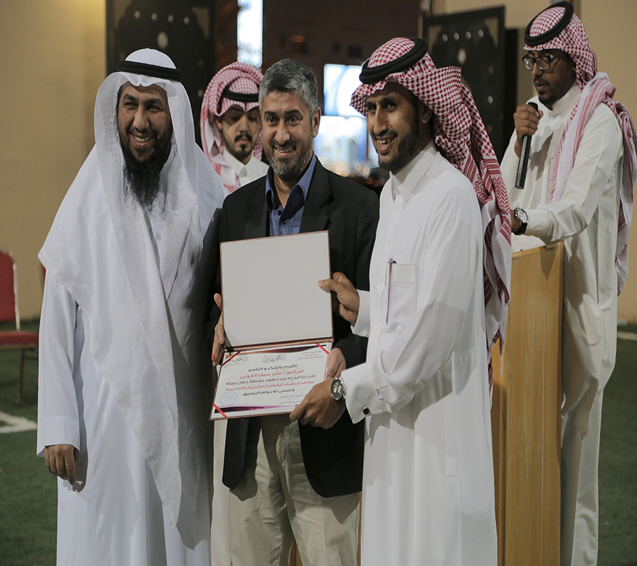 عبدالرحمن المحيميد برعاية سعادة المشرف على كليات الجامعة بالأفلاج الدكتور مسفر بن محماس الكبيري وبحضور وكلاء ومساعدي المشرف وعدداً من أعضاء هيئة التدريس والموظفين، نظم قسم العلاقات العامة والإعلام يوم الأحد الموافق 18/1/1439هـ حفل استقبال لأعضاء هيئة التدريس والموظفين الجدد, حيث بدأ البرنامج بكلمة افتتاحية من الدكتور سعد بن عبدالله الدريهم رحب فيها بالحضور، ثم ألقى المشرف على كليات الأفلاج كلمة استهل في بدايتها بالترحيب بالسادة أعضاء هيئة التدريس والموظفين الجدد, وبين رؤية الكليات وأهدافها والتطور إلى مستويات المتوقع منها وفقا لرؤيتها ورسالتها وخططها في كافة المجالات الأكاديمية والإدارية والبحثية الاستراتيجية، حيث فرضت الجامعة توفير كافة التسهيلات الداعمة للكليات و العمادات والوحدات الإدارية للجامعة من آليات للقياس والتقويم والاعتماد الأكاديمي, ثم شكر منسوبي الكليات على ما حققوه من إنجازات خلال الاعوام السابقة معرباً عن خالص أمنياته لجميع منسوبي الكليات بالتوفيق والسداد في العام الأكاديمي الجديد, تلى ذلك تكريم لرؤساء الأقسام الأكاديمية والإدارية السابقين, وفي الختام دعا المشرف العام الحضور لتناول طعام العشاء.