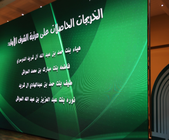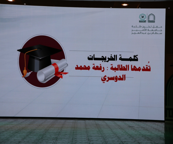 نيابةً عن الخريجات، ألقت الطالبة رفعه محمد الدوسري كلمةً عبرت فيها عن مشاعرهن بهذه اللحظة، وشكرت كل من له الفضل في ذلك. في ختام الحفل كرمت وكيلة الكلية د.العنزي وكيلة الجامعة لشؤون الطالبات د. بشرى الحماد نظير مايبذولونه للطالبات من تسهيل للعملية التعليمة ، وأخيراً اُختتِم الحفل بمسيرة طالبات مرتبة الشرف الأولى والثانية حيث تم تكريمهن.