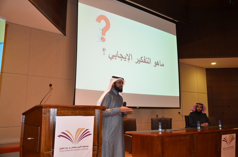 حسن الجنيب تحت رعاية معالي مدير الجامعة نظمت وحدة التوعية الفكرية ضمن مشروع ( نحو جامعة واعية -1- ) حلقة نقاش بعنوان ( التفكير الإيجابي ) قدمها الأستاذ/ جمال حمد الحمداء مساعد عميد شؤون الطلاب للأنشطة الطلابية. في بداية الحلقة قام المحاضر بتقسيم الطلاب المشاركين إلى مجموعات وطرح عليهم عدة أسئلة عن التفكير الإيجابي ، تم الإجابة عليها من خلال النقاش بين مجموعات الطلاب ، وفي نهاية حلقة النقاش ذكر المحاضر أهم عشر وسائل لبناء التفكير الإيجابي ، ثم قدم شكره وتقديره للحاضرين من الطلاب وأعضاء هيئة التدريس ، كما أثنى على الجهود المبذولة من سعادة المشرف على الكليات الدكتور / مسفر الكبيرى لتطبيق برامج وحدة التوعية بفرع الأفلاج.