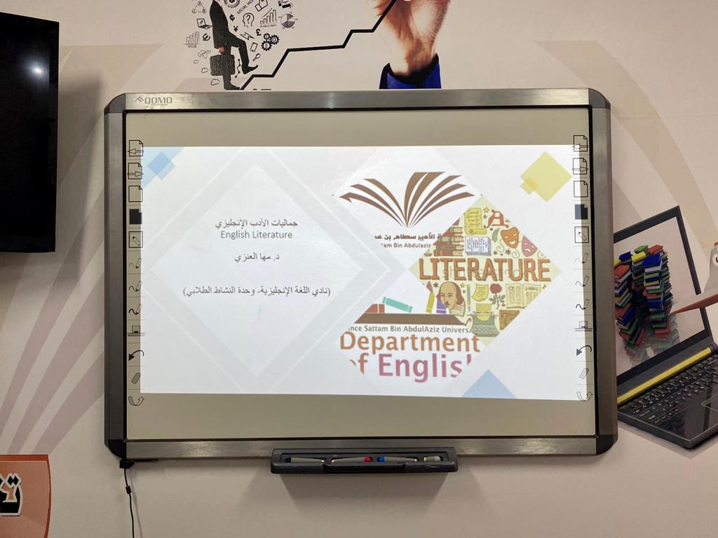 أقامت وحدة العمل الطلابي متمثلة في نادي اللغة الإنجليزية بكلية العلوم والدراسات الإنسانية بالأفلاج ( أقسام الطالبات ) يوم الأربعاء 1443/3/14 هـ في قاعة التدريب برنامج ( جماليات الأدب الإنجليزي ) قدمته د.مها العنزي .