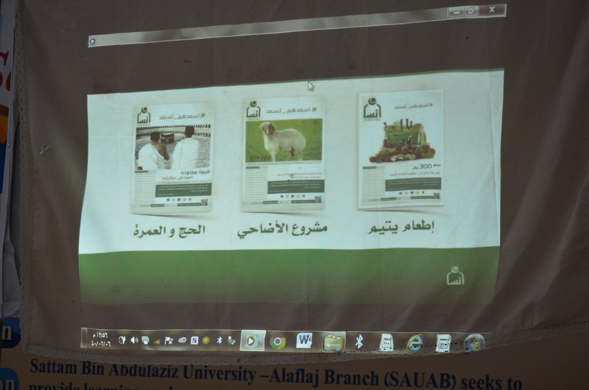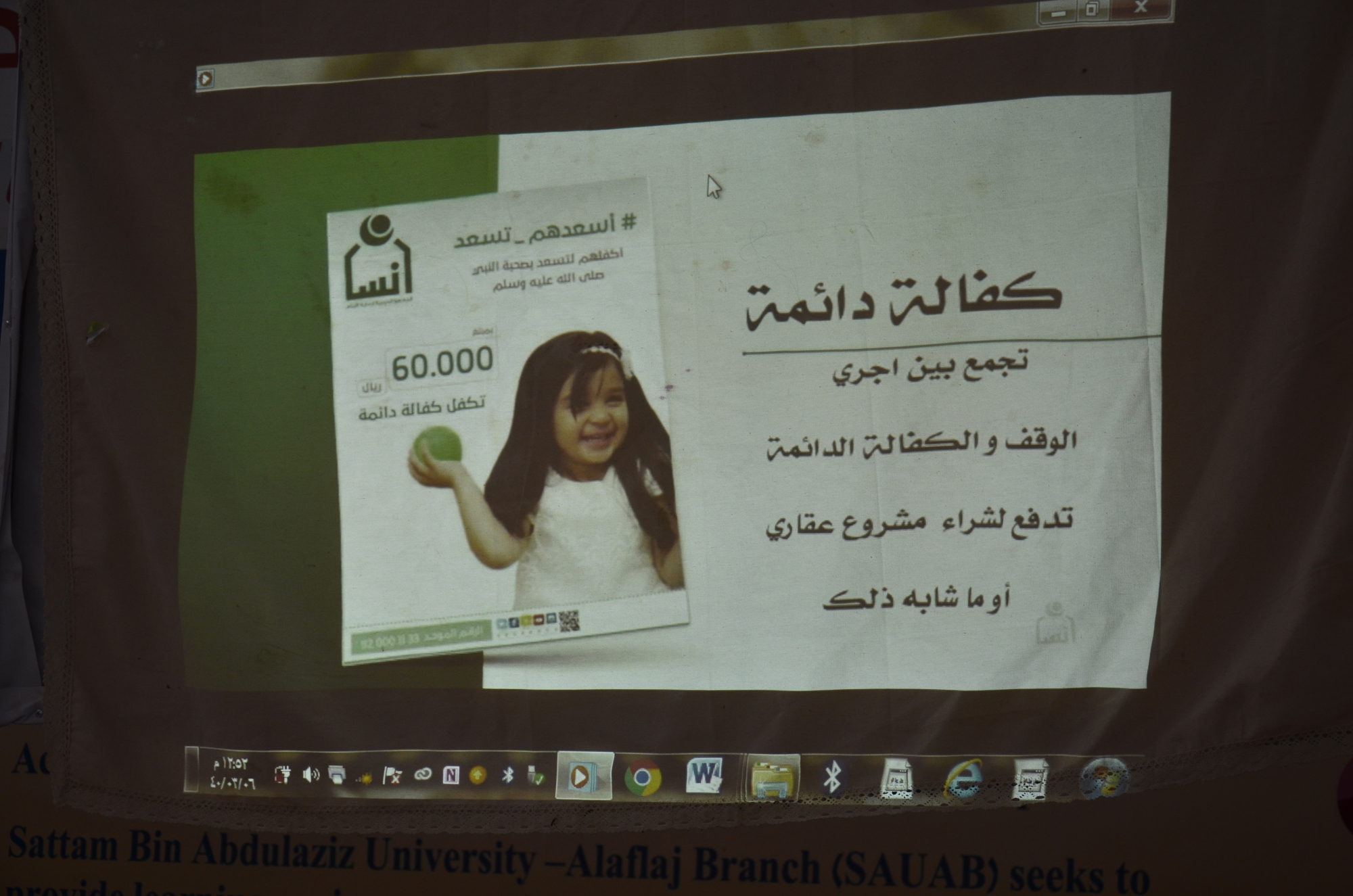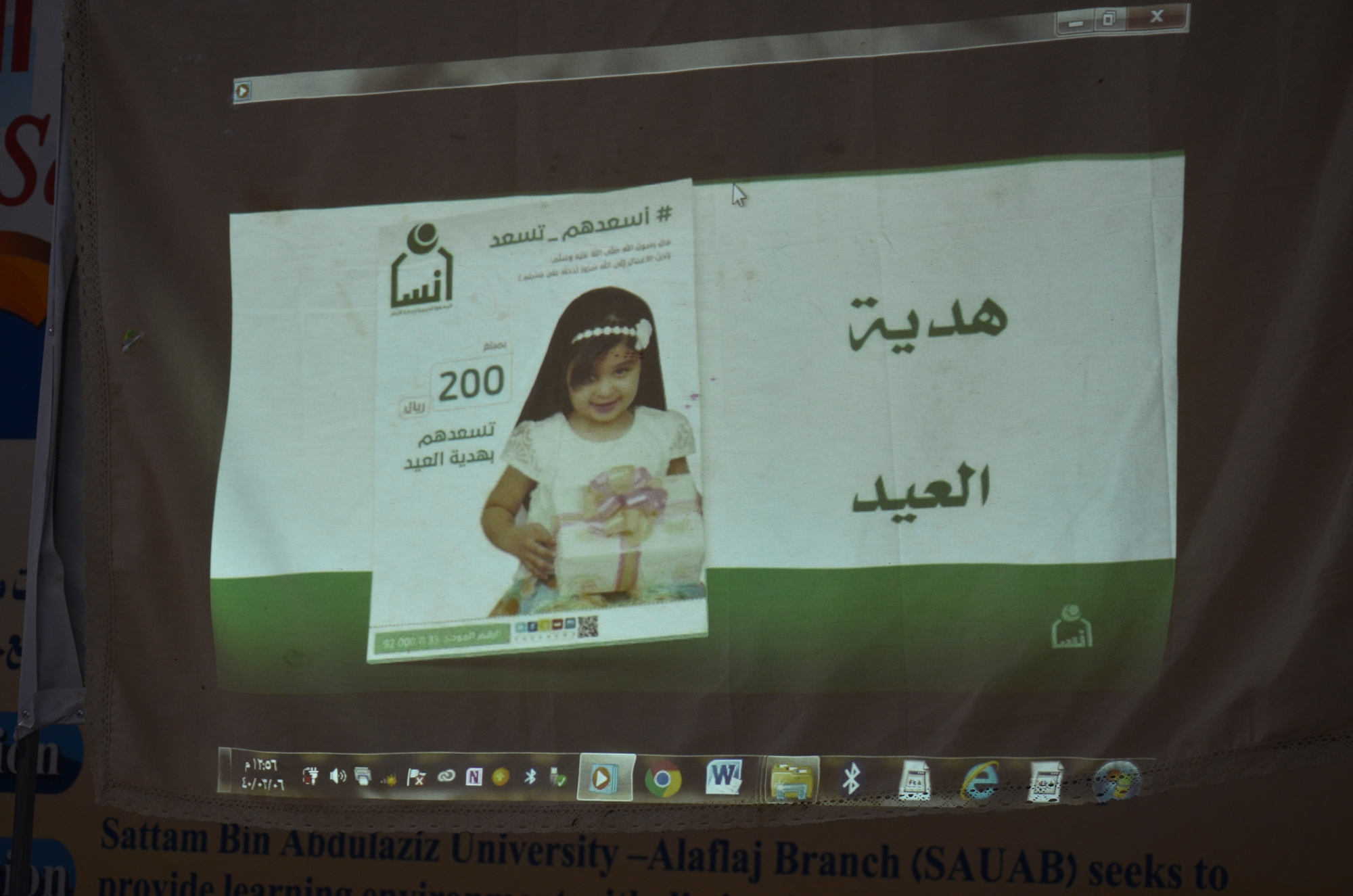 استضافت وحدة العمل الطلابي بكلية العلوم والدراسات الإنسانية بالأفلاج ( شطر الطالبات ) في بهو المبنى العلمي جمعية إنسان في بادرة اجتماعية إنسانية ،افتتح البرنامج بالتعريف بالجمعية و أنشطتها و الفئة المستهدفة بالبرنامج ، كما تم عرض مشاريع الجمعية الدائمة و الموسمية و كذلك الوقف الدائم ، بعدها تم تقديم عرض مرئي وثائقي عن الجمعية والفئات المستفيدة منها ، تلاها شرح العضوية وطريقة الإنضمام اليها. في ختام البرنامج تم عرض طرق التواصل مع الجمعية .