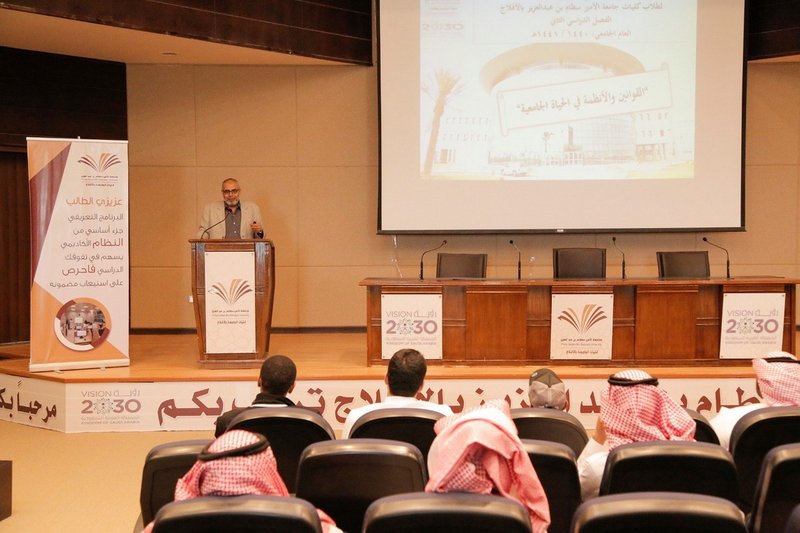 نظمت كليات جامعة الأمير سطام بن عبدالعزيز في الأفلاج، برنامجًا تعريفيًّا لطلابها المستجدين؛ بهدف اكتشاف المواهب وتنميتها وتهيئة المستجدين للمرحلة الجامعية. وتضمّن البرنامج الذي نفذته كليات الأفلاج هذا الأسبوع، عددًا من الفقرات التي تهم الطلاب في حياتهم الجامعية، وعرضًا توضيحيًّا لمرافق الجامعة والأنشطة اللاصفية التي تنفذها وحدة الأنشطة الطلابية. وأخذ الطلاب جولة في الحرم الجامعي بصحبة مجموعة من المشرفين وأعضاء هيئة التدريس، وشملت فقرات البرنامج التعريفي تدوين المواهب والهوايات لدى كل طالب؛ من خلال نماذج وُزعت عليهم، وقدم لهم نبذة عن القوانين والأنظمة في الحياة الجامعية. من جهته ألقى وكيل كلية العلوم للشؤون التعليمية والأكاديمية بالأفلاج، الدكتور إبراهيم بن محمد الأسمري؛ كلمة توجيهية رحب فيها بالطلاب المستجدّين، ودعاهم إلى السعي نحو تحقيق الأهداف والانطلاق بفعالية واجتهاد في إكمال مسيرتهم الجامعية، والاستفادة من الإمكانيات التي وفرتها الجامعة لطلبتها؛ من خلال المشاركة في وحدة الأنشطة الطلابية. Volume 0%