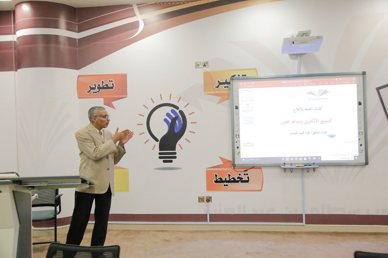 وتهدف الدورة التي قدمها أستاذ إدارة الأعمال المشارك بقسم إدارة الأعمال الدكتور فؤاد محمد الحمدي إلى إكساب المتدربين بعض المعارف والمهارات ذات الصلة بموضوع يعد من الموضوعات الحيوية في عالمنا المعاصر ألا وهو موضوع التسويق الإلكتروني وصناعة المحتوى ، خاصة في ظل التغيرات التي تشهدها منظمات الأعمال وتحول أغلب هذه المنظمات للتجارة الالكترونية والتسويق الإلكتروني .