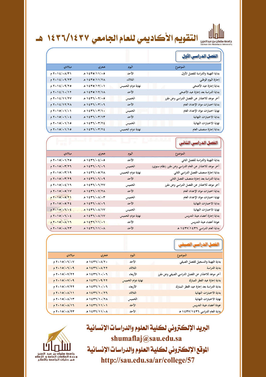 من جانبه وجه سعادة المشرف على كليات الجامعة بالأفلاج بنشر التقويم على موقع كلية العلوم والدراسات الإنسانية بالأفلاج.