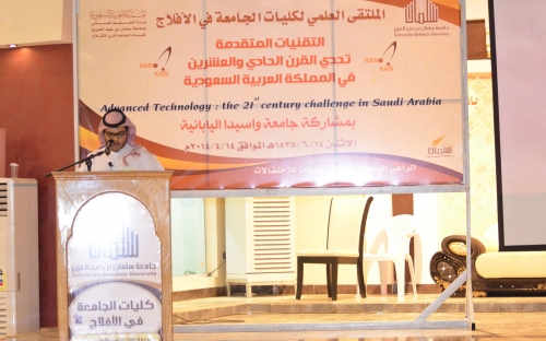 اختتمت كليات الجامعة في الأفلاج مساء أمس الاثنين 14/6/1435 هـ الموافق 14 / 4 / 2014م فاعليات الملتقى العلمي لكليات الجامعة في الأفلاج التقنيات المتقدمة تحدي القرن الحادي والعشرين في المملكة العربية السعودية بمشاركة جامعة واسيدا اليابانية وبرعاية كريمة من معالي مدير الجامعة الدكتور/عبد الرحمن بن محمد العاصمي .