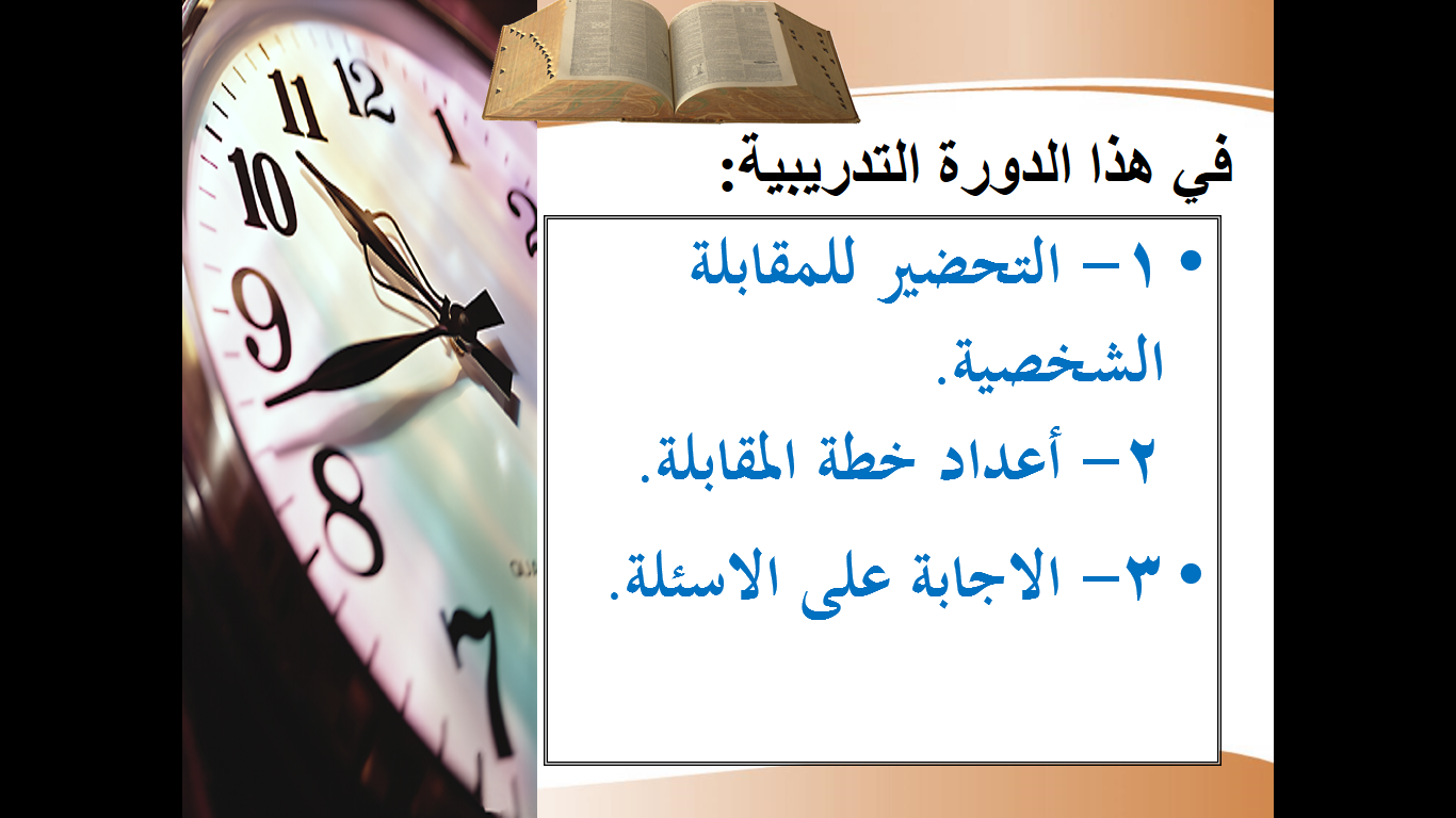 هدفت الدورة التدريبية التي قدمها عضو هيئة التدريس بقسم إدارة الأعمال الدكتور كمال محمد حامد الفكي إلى تعرف المتدربين بمفاهيم استقطاب وتعيين الموارد البشرية، والتعرف على مهارات المقابلة الشخصية من خلال التحضير واعداد خطة المقابلة والاجابة على الأسئلة، وعلى أنواع المقابلات الشخصية والوصايا الذهبية العشرة لأجراء مقابلة شخصية ناجحة، بالإضافة إلى تعرف المتدربين على عدد مقدر من الجهات المانحة للشهادات المهنية في تخصصات مختلفة.