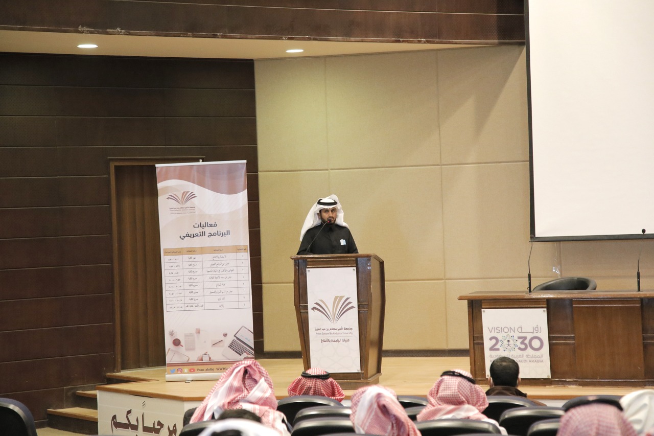حيث ابتدأ البرنامج باستقبال الطلاب وتهيئة الجو الجامعي لهم، تلى ذلك عرضًا مرئيًّا عن البرنامج التعريفي والقوانين والأنظمة في الحياة الجامعية بعد ذلك استعرض عرضاً عن برامج الأنشطة الطلابية وأهمية صقل مواهب الطلاب من خلالها، كما تخلل البرنامج توزيع نماذج إلكترونية للراغبين بالانضمام إلى برامج الأنشطة وبرامج الموهوبين، بعدها تم عرض أبرز أعمال وخدمات قسم القبول والتسجيل الهامة.
