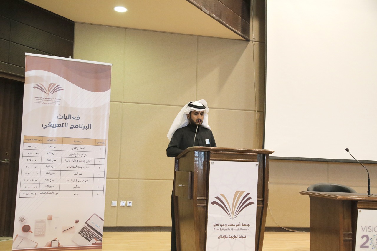 نظمت كلية العلوم والدراسات الإنسانية في الأفلاج اليوم الاثنين برنامجًا تعريفيًّا لطلابها الجدد، تضمن عددًا من الفقرات التي تهم الطلبة في حياتهم الجامعية.
