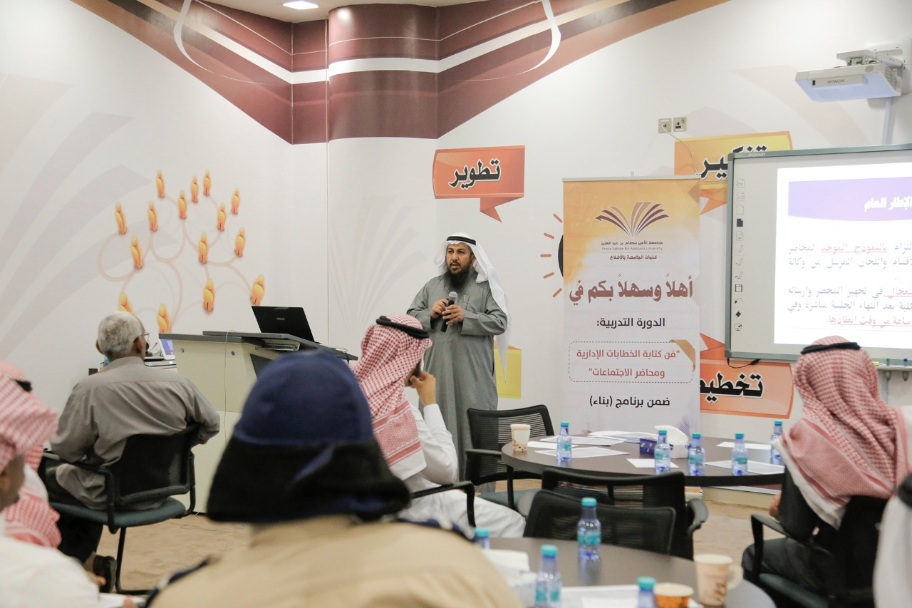 ضمن برنامج "بناء" للتطوير الأكاديمي والإداري؛ نظمت كليات جامعة الأمير سطام بن عبدالعزيز بالأفلاج اليوم الأحد دورة تدريبية بعنوان " فن كتابة الخطابات الإدارية ومحاضر الاجتماعات" لأكثر من ٨٥ من منسوبي ومنسوبات كليات الأفلاج وذلك بحضور المشرف على كليات الجامعة بالأفلاج الدكتور مسفر بن محماس الكبيري، التي قدمها كلٌ من وكيل كلية العلوم والدراسات الإنسانية للشؤون التعليمية والأكاديمية بالأفلاج د. إبراهيم الأسمري، والمشرف على برنامج "بناء" د. حمد الهزاع، وعضو هيئة التدريس بقسم علوم الحاسب بالكلية د. مزمل موسى، كان الهدف منها تنمية المهارات الإدارية في كتابة الخطابات الرسمية والتقارير ومحاضر الاجتماع لدى موظفي وموظفات الكليات. حيث بدأت الدورة بكلمة ترحيبية من د. حمد الهزاع شكر فيها الحضور وتحدث عن أهداف البرنامج في الفصل الدراسي الثاني للعام الجاري. تلى ذلك عرضاً تقديمياً اشتمل على عدة محاور من أهمها: تعريف المخاطبات الرسمية وسمات ومهارات كتابة الخطاب الجيد، وماهي الأمور التي يجب مراعاتها عند كتابة الخطاب الرسمي والرسالة الإدارية، وأهمية ذلك في سير العملية الأكاديمية والإدارية، وتم خلال الدورة تدريب الحضور عملياً على اكتشاف الأخطاء في العديد من الخطابات وكيفية الرد عليها.من جهته علق المشرف على كليات الأفلاج الدكتور مسفر الكبيري على محتوى الدورة شاكراً القائمين على هذا البرنامج ومشيدا بما يقدمه من دورات وورش عمل يصب في مصلحة الكليات بشطريها (الرجالي والنسائي).وفي القسم الثاني من الدورة تحدث الدكتور الأسمري عن مقدمة في أهداف الاجتماعات وتصنيفاتها و عن محاضر الاجتماعات وكيفية إعداد المحاضر وأهميتها في العمل المؤسسي، وأنواع محاضر الاجتماعات ومراحل كتابته، وأهمية تدوين عنوان وتاريخ ووقت ومكان عقد الاجتماع وأسماء الحضور .وفي ختام الدورة تحدث الدكتور مزمل موسى عن أمثلة وأخطاء كتابة محاضر مجالس الأقسام وكيفية استيفاء المذكرة لكافة المعلومات التي تحتاج لها المعاملة وكافة التفاصيل الجوهرية المرتبطة بذلك.وفي نهاية اللقاء تم فتح باب النقاش والمداخلات للحضور، حيث طرحت العديد من الأفكار والأسئلة التي ساعدت على إثراء الموضوع وزيادة الوعي الإداري لدى موظفي وموظفات كليات الأفلاج.