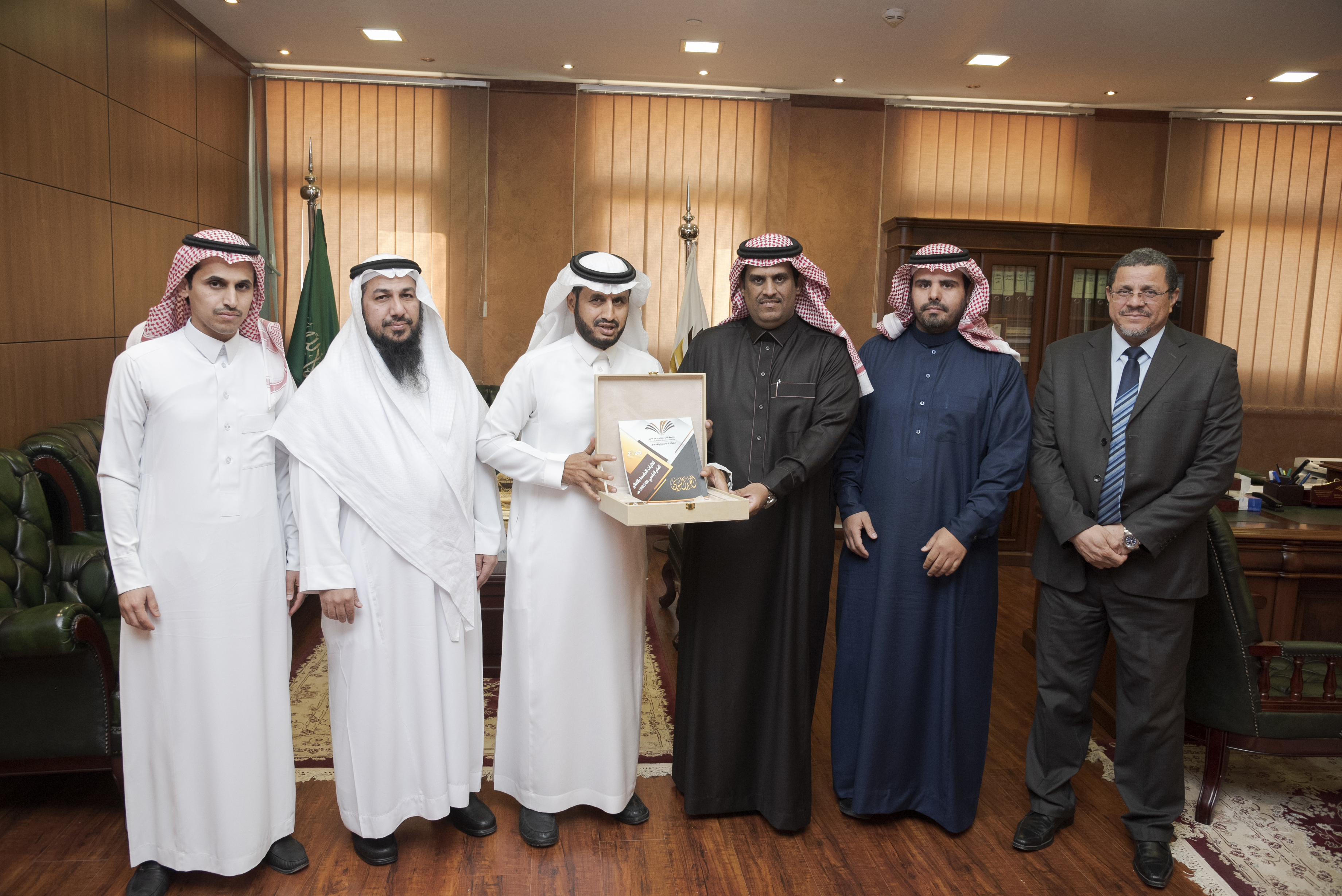 تسلّم معالي مدير جامعة الأمير سطام بن عبد العزيز الأستاذ الدكتور عبد العزيز بن عبد الله الحامد، التقرير السنوي لكليات الجامعة بالأفلاج. وتفصيلاً، قام المشرف العام على كليات الأفلاج الدكتور مسفر بن محماس الكبيري بتسليم التقرير السنوي للكليات، وتضمن التقرير أبرز ما حققته كليات الأفلاج من إنجازات ومشاركات ومبادرات خلال العام الجامعي 1439-1440هـ. كما سلم "الكبيري" نسخة من التقرير السنوي لوكيل الجامعة للشؤون التعليمية والأكاديمية الدكتور مشاري بن عياد العصيمي. وحضر تسليم التقرير كلٌ من وكيل كلية العلوم والدراسات الإنسانية للشؤون التعليمية والأكاديمية الدكتور إبراهيم بن محمد الأسمري، ووكيل كلية المجتمع للشؤون التعليمية والأكاديمية الدكتور فهدبن سلطان القحطاني، ووكيل كلية العلوم والدراسات الإنسانية، للتطوير والجودة والدراسات العليا الدكتور محمد بن هذال الدوسري، ورئيس وحدة التطوير والجودة لكليات الأفلاج الدكتور محمود محمد سليم. وقدم الدكتور الكبيري باسمه وباسم منسوبي كليات الأفلاج شكره وتقديره لمعالي مدير الجامعة على ما تجده الكليات من دعم ومساندة معاليه؛ في كل ما تحتاج إليه برامجها ونشاطاتها. يُذكر أن كليات الأفلاج حققت العام الماضي عددًا من الإنجازات على مستوى مسابقات ومنافسات الجامعة، ونفذت العديد من المبادرات والحملات والمناشط المجتمعية.