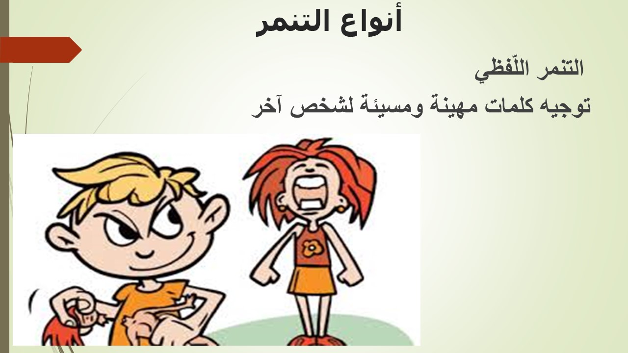 افتتحتها بتعريف التنمر وأشكاله وأنواعه وكذلك أسبابه ، تطرقت بعدها إلى الآثار التي يتركها التنمر في نفس الضحية ، وكيف نتعامل مع المتنمرين .
