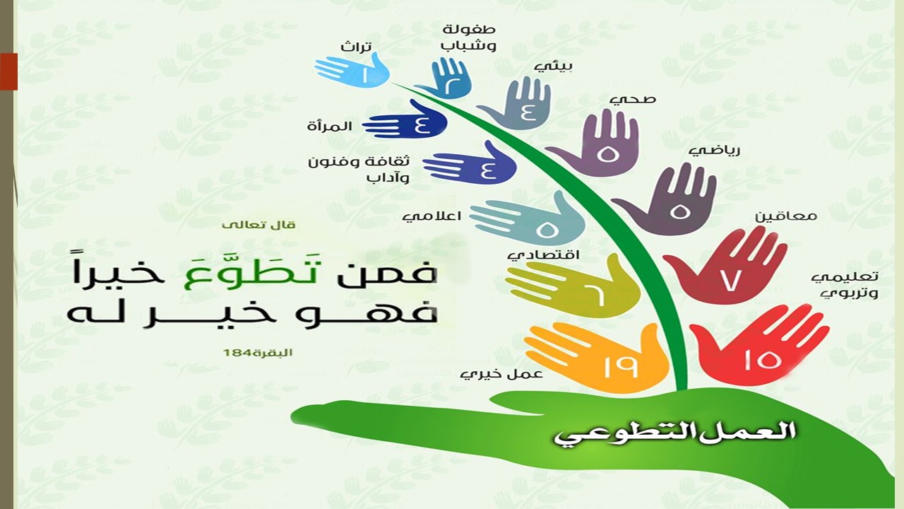 افتتحتها بتعريف العمل التطوعي ، وأنواعه ومجالاته وأهدافه وفوائده و آثاره النفسية والجسدية على الفرد والمجتمع .