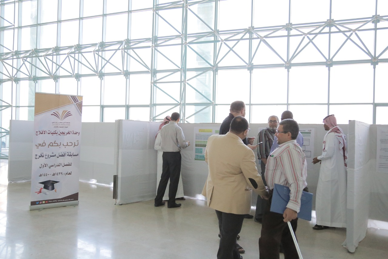 دخلت أقسام كليات الجامعة بالأفلاج في مسابقة أفضل مشروع تخرجللفصل الدراسي الأول من العام الجامعي 1439 / 1440 هـ .وكانت وحدة الخريجين بكليات الجامعة بالأفلاج قد نظمت يومالأربعاء مسابقة أفضل مشروع تخرج للفصل الدراسي الأول من العامالجامعي 1439 / 1440 هـ .وذلك بحضور عدد كبير من منسوبي الكلية وطلاب الكلية وشاركتالأقسام بـ 9 مشروعات تخرج موزعة كالتالي: قسم اللغة الإنجليزية(3 مشروعات تخرج) وقسم الرياضيات (2 مشروع تخرج) وقسم الحاسب (مشروع تخرج واحد) الآليوقسم إدارة الاعمال (3 مشروعات تخرج)، واسفرت المسابقة عن فوز أحد مشروعات التخرج بقسم اللغةالإنجليزية بالمركز الأول كأفضل مشروع تخرج لهذا الفصل وكان بعنوان: ("Challenges Facing English Department Students' in Conversation at Prince Sattam Bin Abdulaziz University in Al Aflaj")."تحديات المحادثة لدى طلاب قسم اللغة الإنجليزية بجامعة الأمير سطام بن عبد العزيز بالأفلاج"فيما حصل على المركز الثاني قسم إدارة الاعمال وكان مشروعه تحت عنوان : "دور الكفاءات البشريةفي تحقيق الميزة التنافسية-دراسة حالة جامعة الأمير سطام بن عبد العزيز بالأفلاج" .وحصل قسم الرياضيات على المركز الثالث وكان مشروعه بعنوان: "طرق الأمثلة متعددة الأهداف فيالتحليل المحدب" .وفي ختام المسابقة قام وكيل الكلية للشؤون التعليمية والأكاديمية الدكتور إبراهيم الأسمري ومشرف وحدةالخريجين بالكلية الدكتور فهد القحطاني بتسليم الطلاب الفائزين جوائز المسابقة..