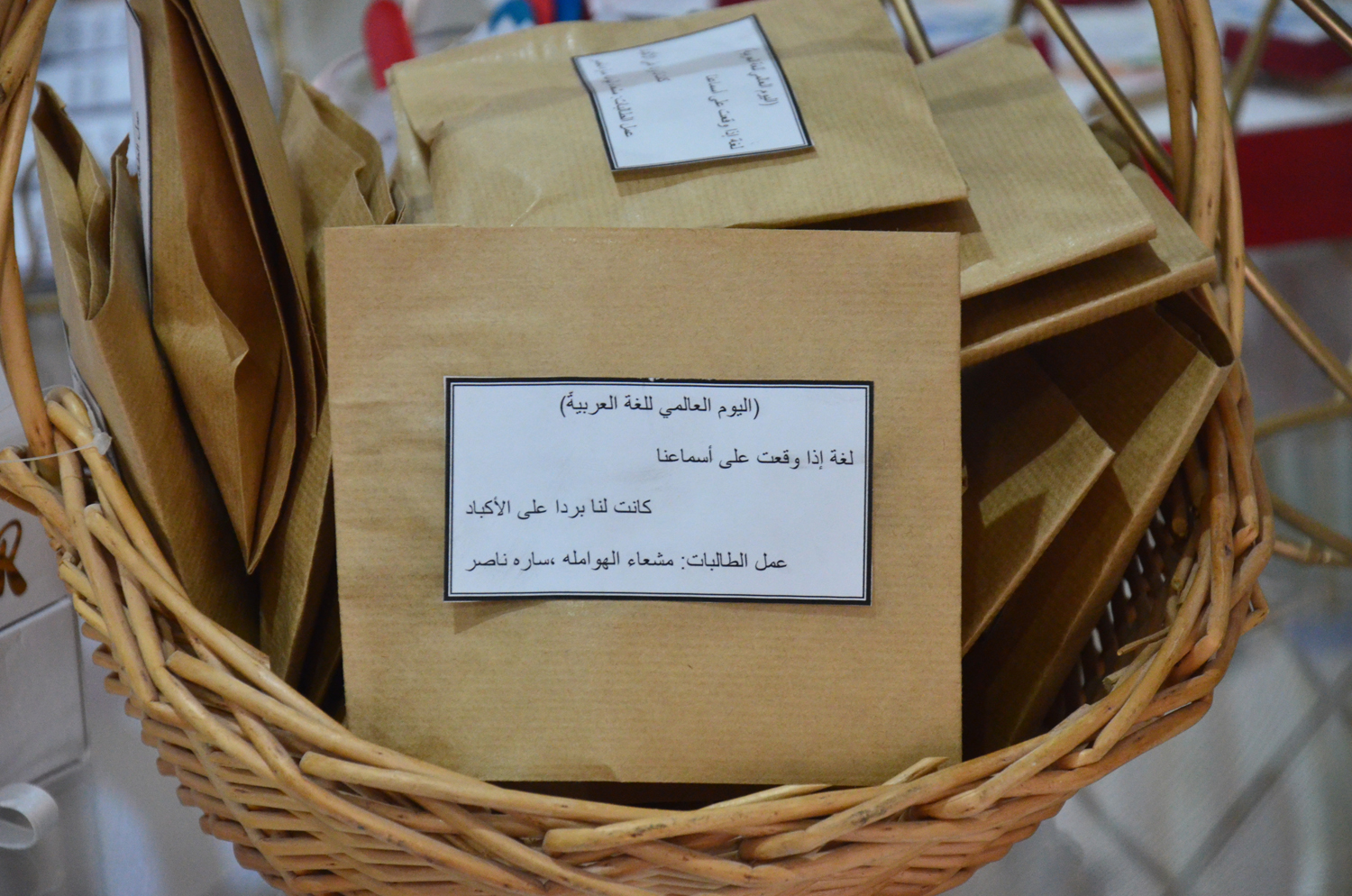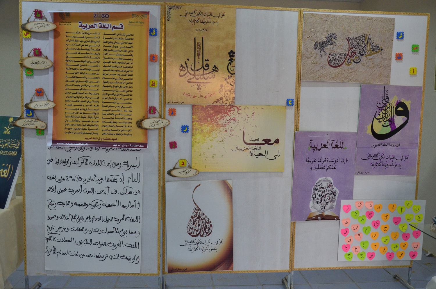 فعلت وحدة العمل الطلابي بكلية العلوم والدراسات الإنسانية بالأفلاج (شطر الطالبات ) يوم الأربعاء ١٤٤٠/٥/٢٤ الساعة التاسعة صباحاً في قاعة الأنشطة برنامج (اليوم العالمي للغة العربية ) بُدء البرنامج بمقدمة عن اللغة العربية ، تلاها عرض مرئي عن مكنونات اللغة ثم قصيدة شعرية من القاء الطالبات ، تلاها مسابقة قُدمت لإختبار الملكة اللغوية لدى الحضور ، بعدها قدمت احدى الطالبات توصيات للإعتزاز باللغة العربية و التحدث بها وعدم تجاهلها . صاحب ذلك معرض احتوى على منشورات و بعض الخطوط العربية و قصائد شعرية تغنت بجمال اللغة وتجددها .