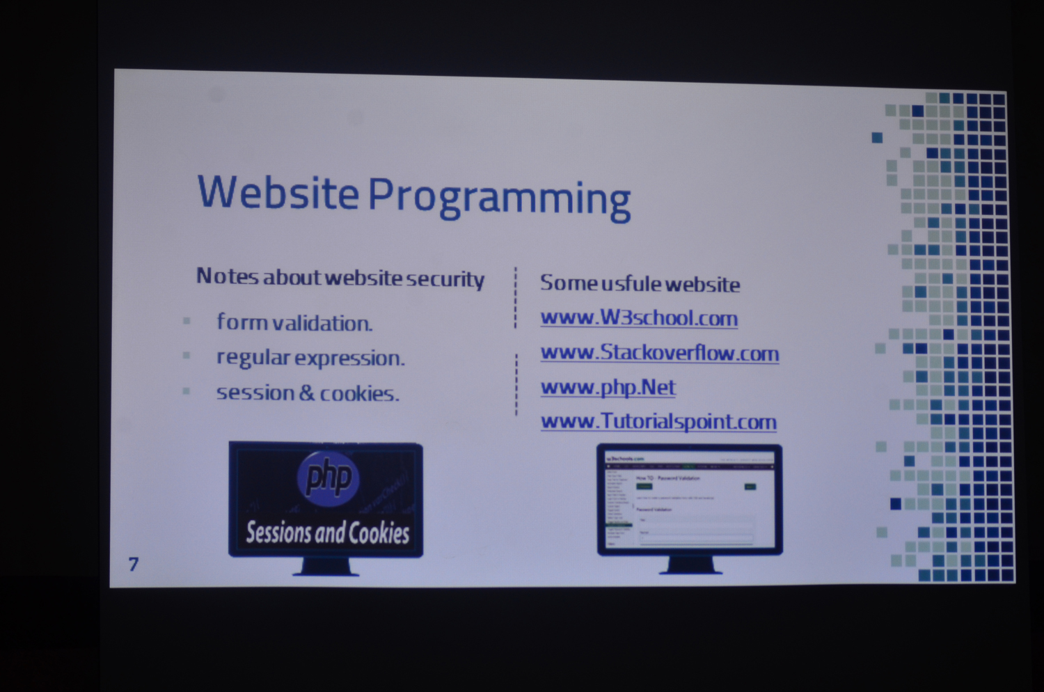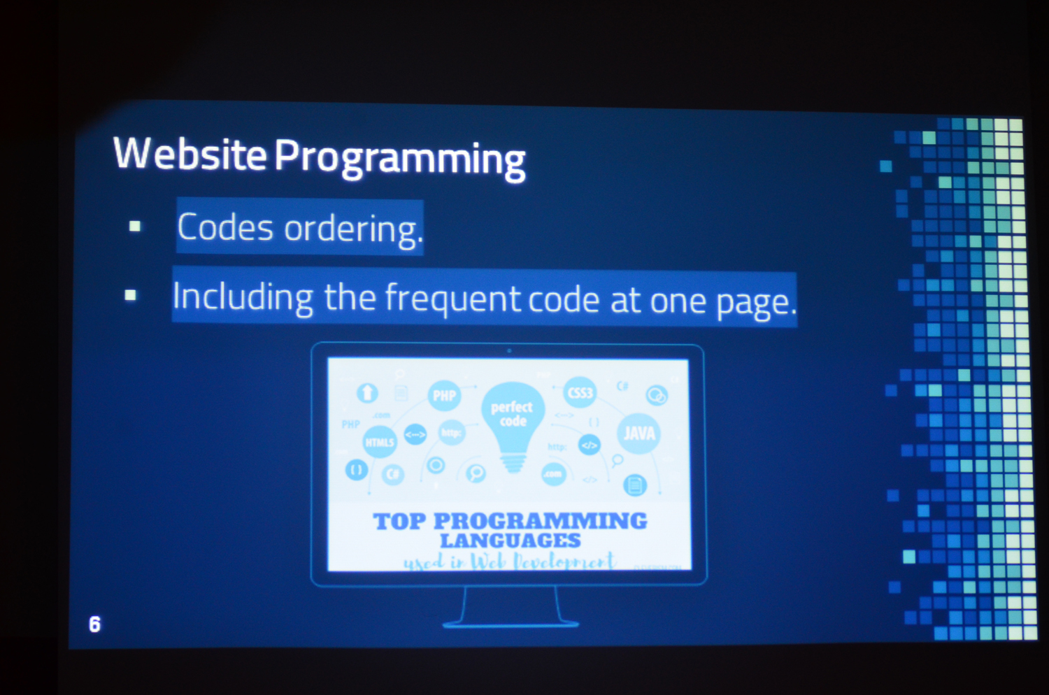 نظمت وحدة العمل الطلابي بكلية العلوم والدراسات الإنسانية بالأفلاج شطر الطالبات يوم الأربعاء 1440/6/8 هـ ورشة عمل تدريبية بعنوان ( برمجة مواقع الويب ) قدمتها عضو هيئة التدريس الأستاذة روابي العمار , تطرقت الورشة الى أهم وسائل و تسهيلات لعملية برمجة مواقع الأنترنت , وكذلك حل بعض المشكلات التي تواجه الطالبات أثناء البرمجة , مع ذكر بعض الحلول التي تسهل عملية البرمجة . في ختام اللقاء فُتح باب النقاش لطرح بعض القضايا و المشاكل التي تواجه الطالبات في مشاريع التخرج وتمت الإجابة عليها .