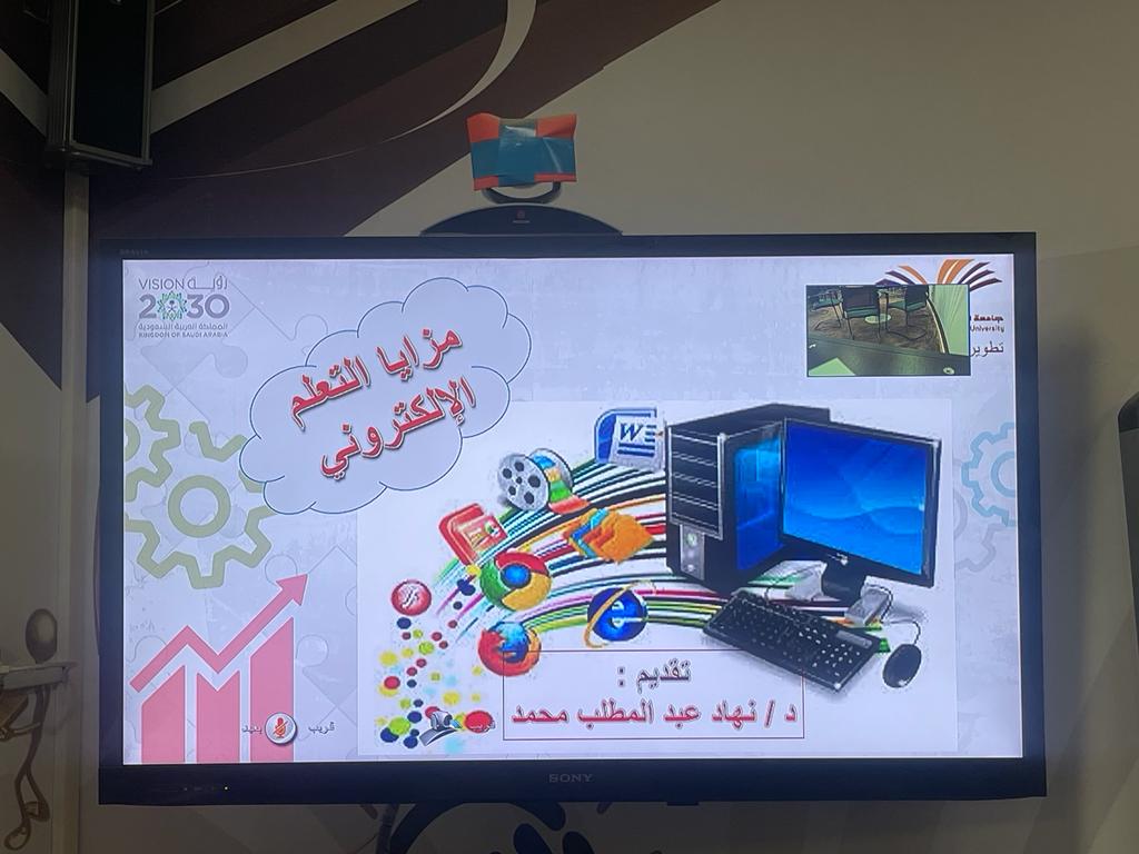 ووضحت أساسياته ومفاهيمه ، وعددت أنواع التعليم الإلكتروني ، وبينت مميزات نظام إدارة التعليم الإلكتروني ومكوناته ، وعددت مصادر التعليم الإلكتروني على الأنترنت ، واختتمتها الدكتورة (نهاد عبد المطلب) بالحديث عن مميزات التعليم عن بعد.